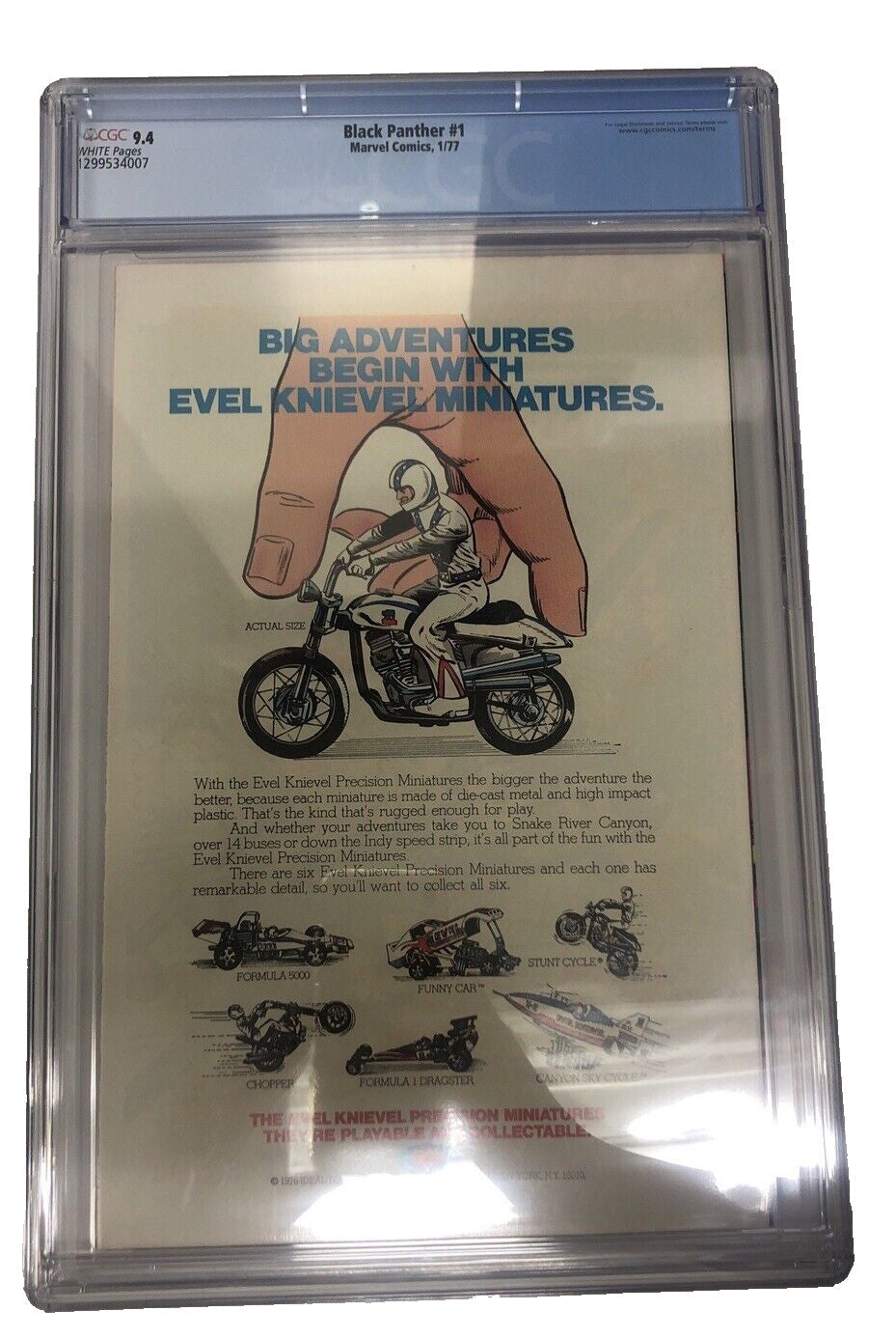This is a brand new, CGC-certified copy of Black Panther #1 from 1977, featuring the iconic work of artist and writer Jack Kirby. The comic is graded at 9.4 Near Mint and features a dynamic cover by Kirby and Mike Royer. The Black Panther character has been a cornerstone of the Marvel (MCU) universe since his debut in 1966, and this issue is a must-have for any collector of US Comics.