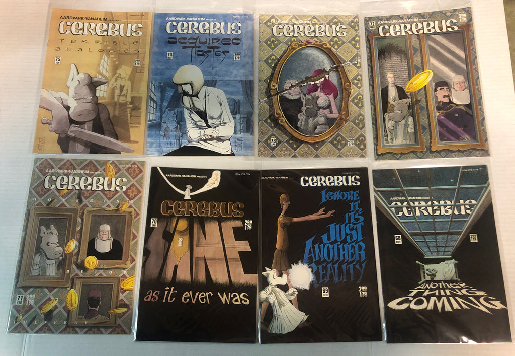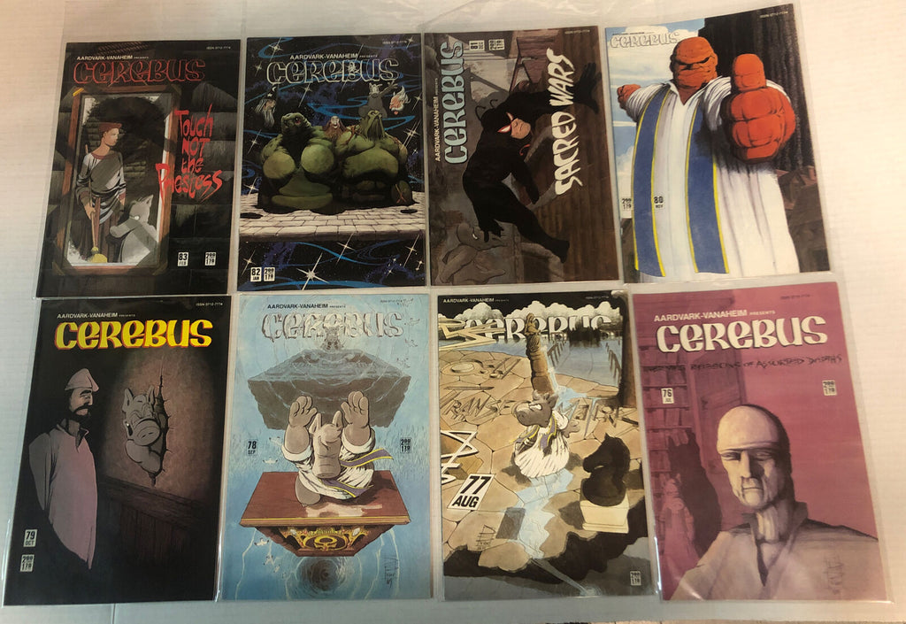 Each issue showcases the distinct storytelling and artwork that have become synonymous with the Cerebus character and his adventures. This collection is a must-have for enthusiasts of US Comics tradition, preserving the unspoken charm and wit that Cerebus brought to the graphic novels of the era. Enjoy the journey through the vivid narratives that have made Aardvark-Vanaheim a revered name in the comic book world.