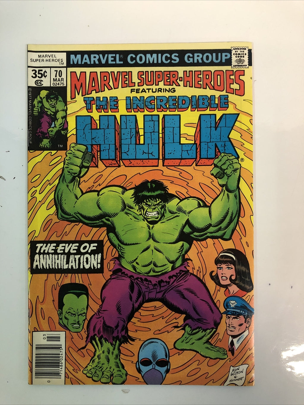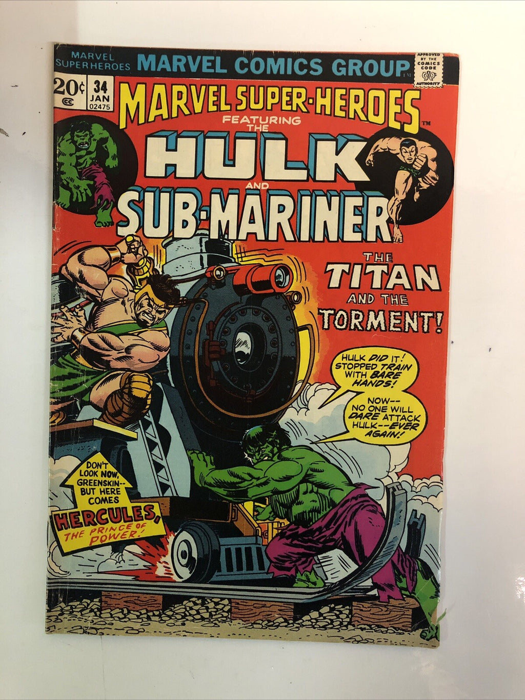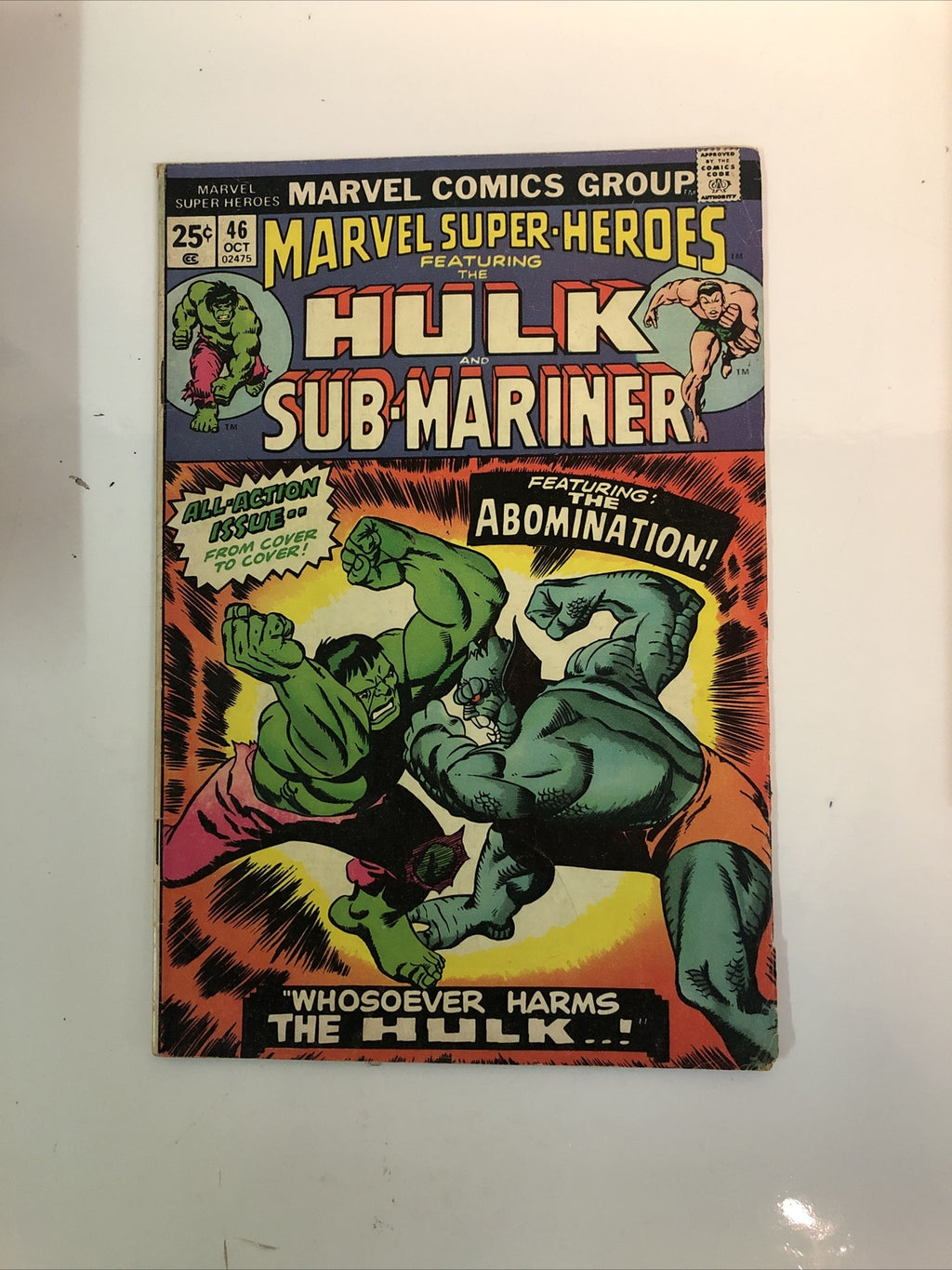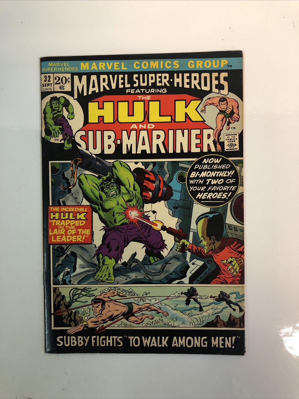 Get your hands on this rare Marvel Super Heroes comic book featuring Hulk and Sub-Mariner! Published in 1972, this consequential set includes issues #32-105 and is graded at 5.0 Very Good/Fine condition. The characters of Hulk and Sub-Mariner come together in this action-packed adventure, set in the Marvel Universe.