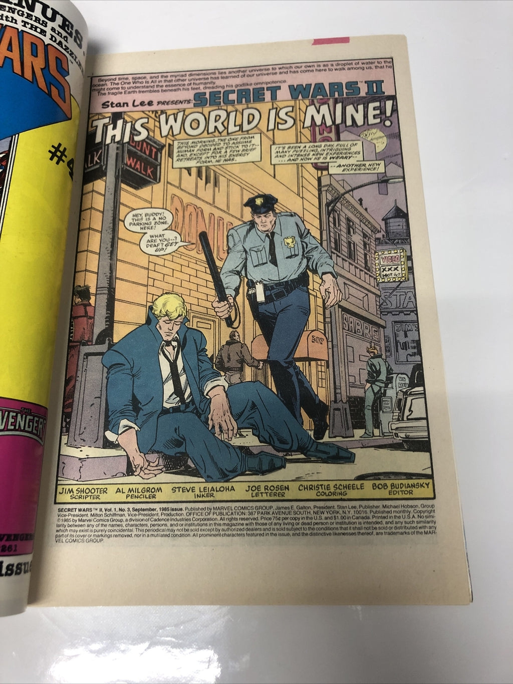 Marvel Super Heroes Secret Wars (1984) #3 (VF/NM) Canadian Price Variant * CPV. This comic book is a must-have for any collector or fan of the Marvel universe. Written by Jim Shooter and published by Marvel Comics during the Copper Age (1984-1991), this third issue of the Secret Wars series features a variant cover with a Canadian price and is in excellent condition with a grade of 9.0 Very Fine/Near Mint.