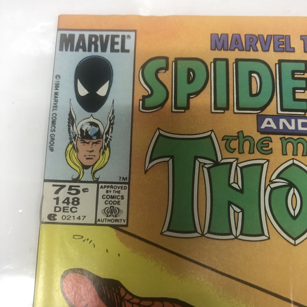 Marvel Team-Up Spider-Man And Mighty Thor (1984) #148 (VG) CPV by Cary Burkett is a must-have for any collector of US comics. This copper age comic features a team-up of the iconic Spider-Man and The Mighty Thor, making it a thrilling addition to any action-packed collection.