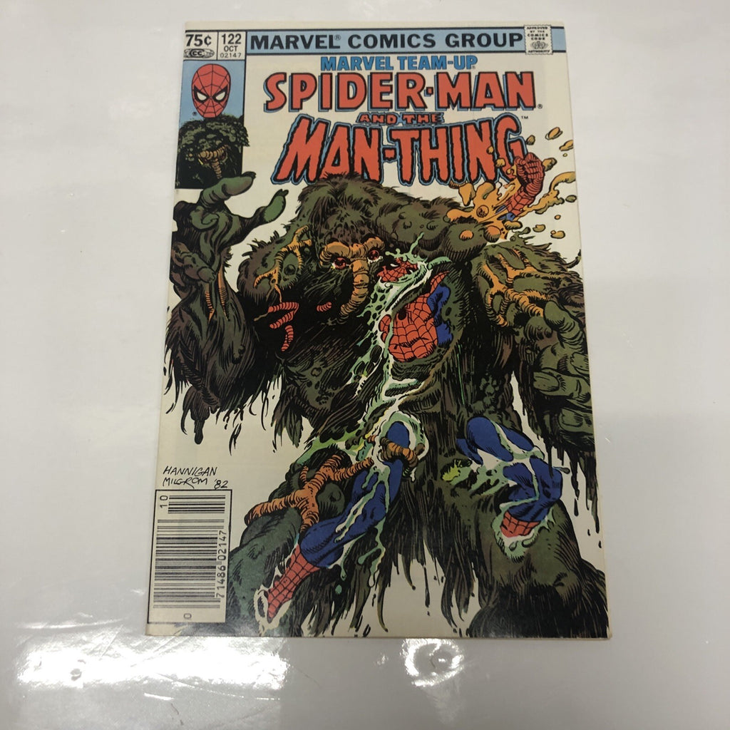 Get your hands on the rare Marvel Team-Up Spider-Man and The Man-Thing #122 (1982) in VF condition with a price variant. Written by J.M. Dematties, this Bronze Age (1970-83) comic features Spider-Man (Peter Parker) teaming up with the swamp monster Man-Thing in a thrilling action-packed adventure.