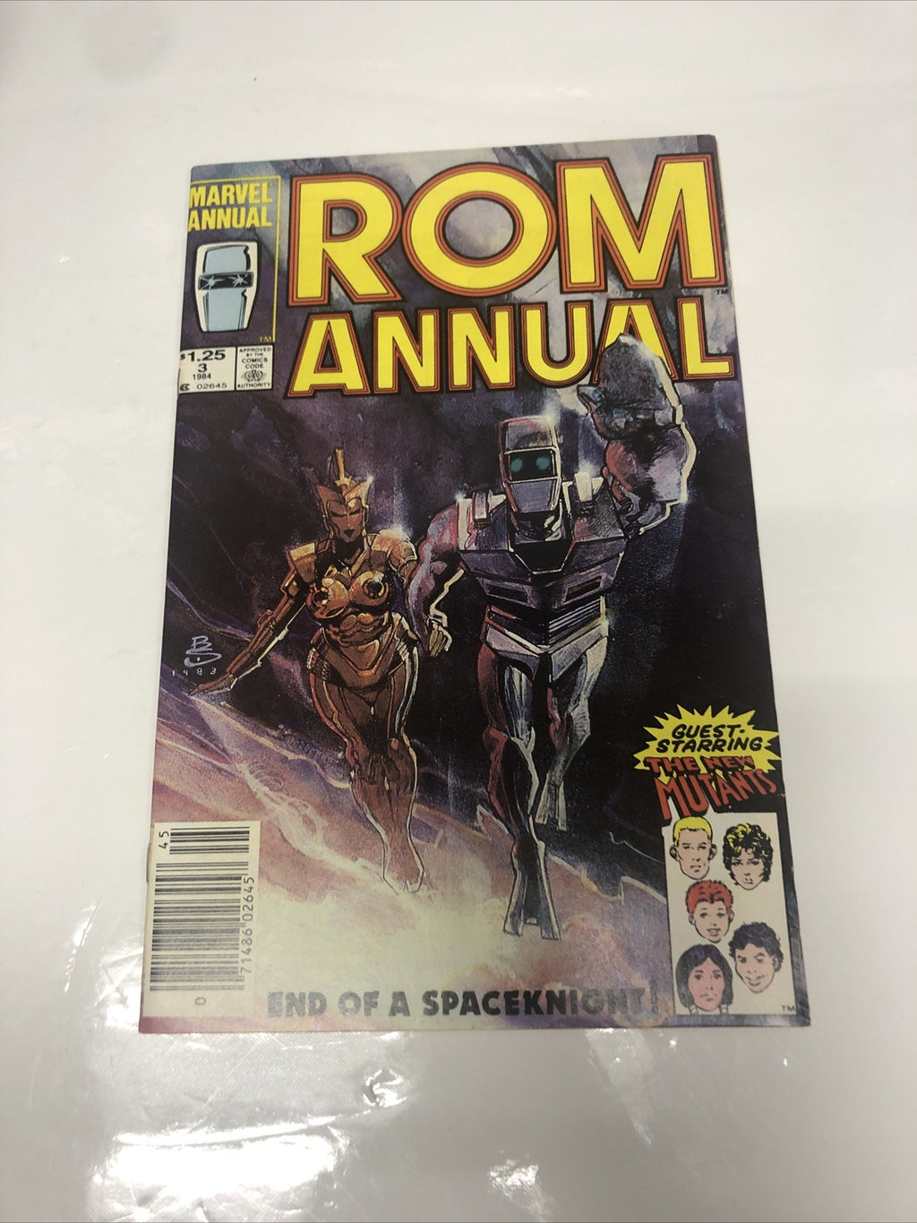 This ROM Annual #3 from 1982 is a rare Canadian Price Variant that features the work of writer Bill Mantlo. This issue is graded at a 9.0 Very Fine/Near Mint, making it a highly collectible item for fans of Bronze Age (1970-83) US Comics.