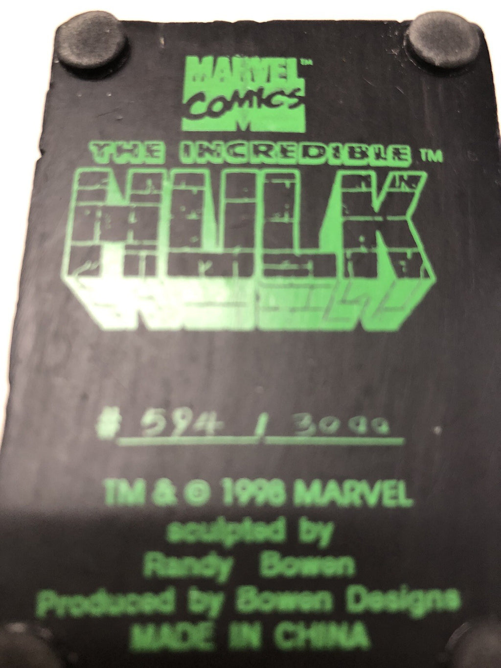 The Incredible Hulk (1998) #594 Of 3000 Bowen Designs Mini-Bust Statue is a rare collectible piece for any Hulk fan. This multicolored statue, manufactured in China in 1998, showcases the iconic character in all his glory. Perfect for display or adding to a collection, this limited edition piece is a must-have for any serious collector of action figures.