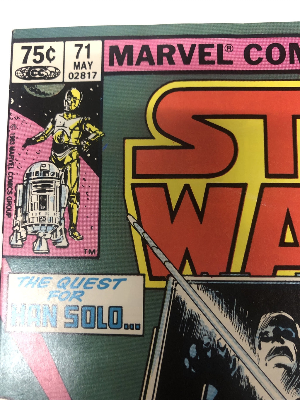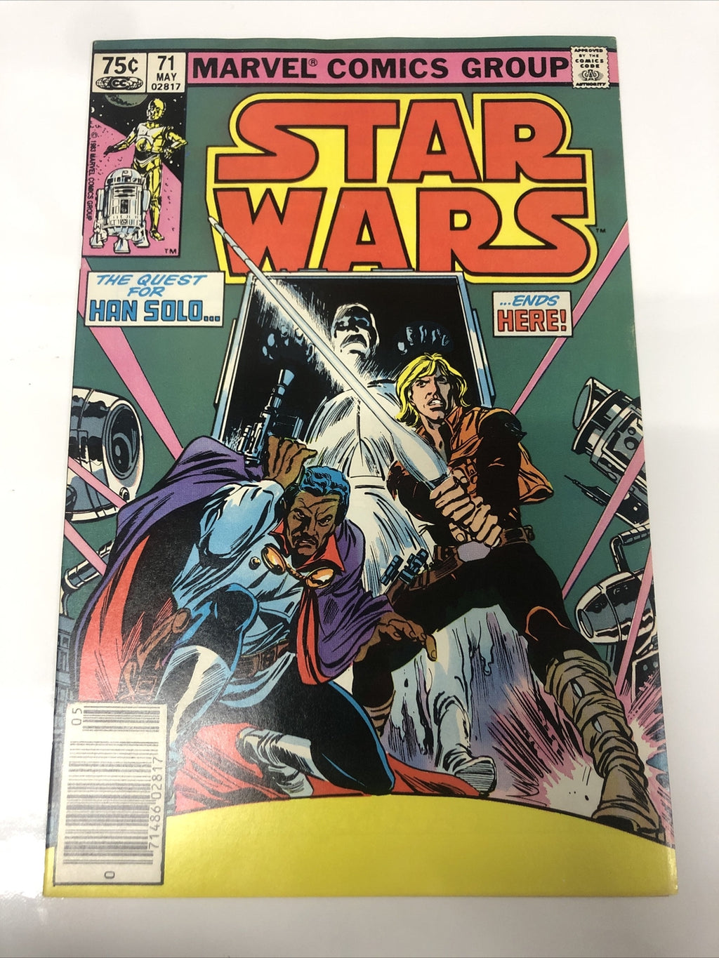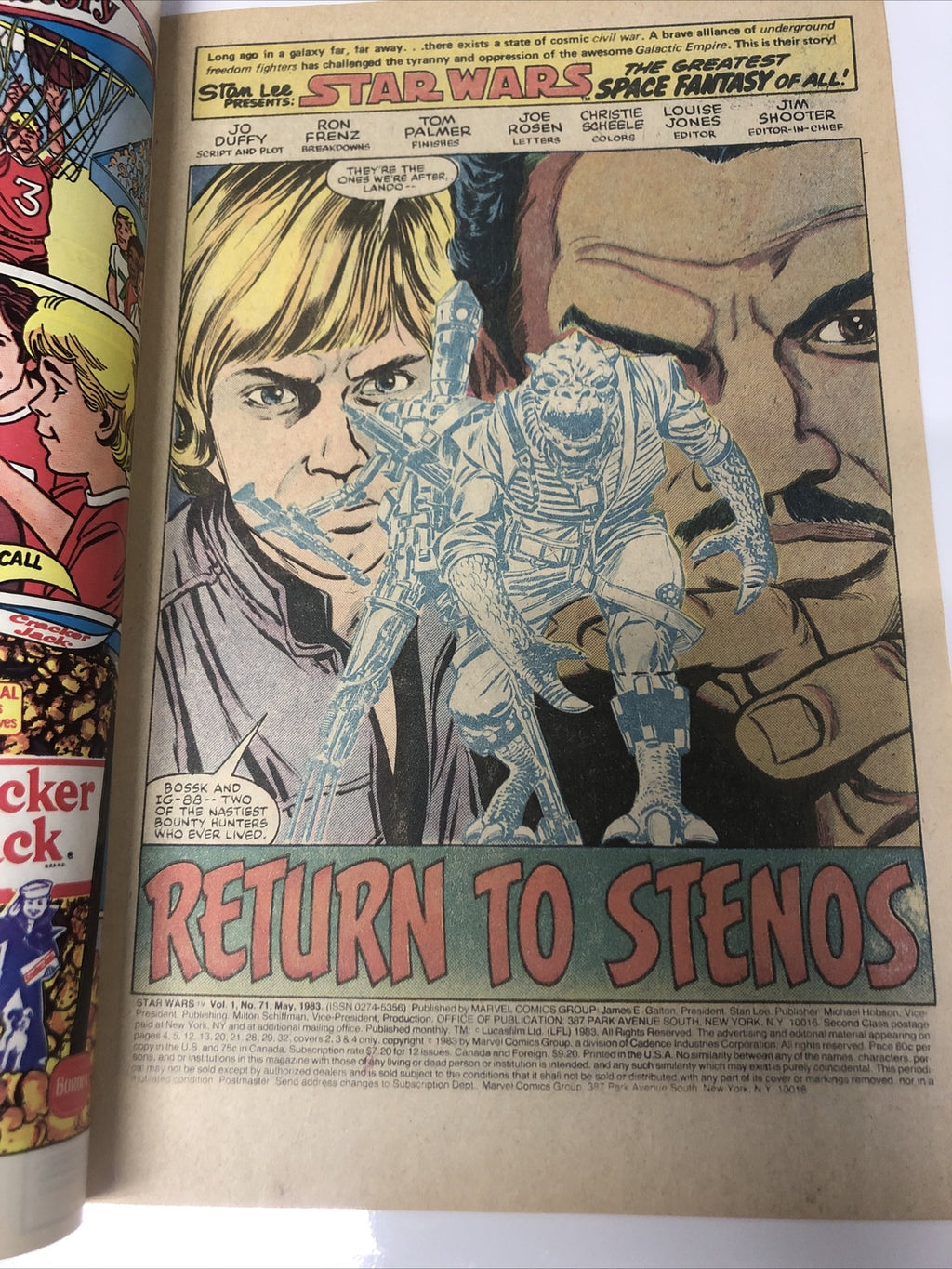 This is a rare and highly sought-after copy of Star Wars issue #71 from 1983, featuring a Canadian price variant (CPV) and graded at 9.4 Near Mint. Written by Jo Duffy, this action-packed comic is a must-have for any serious Star Wars collector.