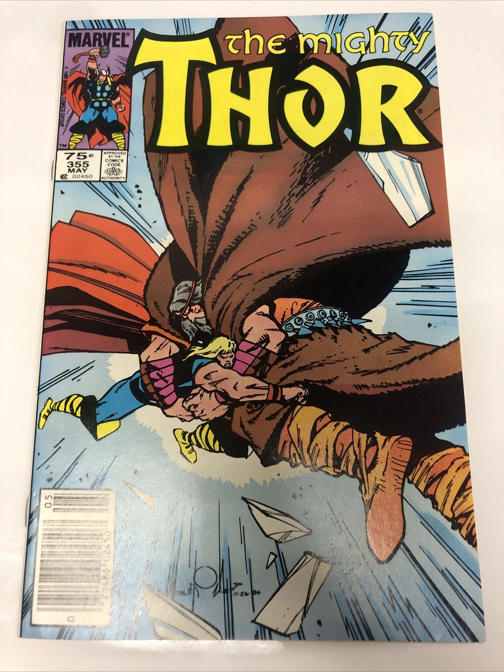 Get your hands on a near-mint condition of Thor #355, a Canadian price variant comic book from 1985. This action-packed issue features the iconic character Thor and is written by Walter Simonson, a renowned artist and writer in the US Comics tradition. This particular copy is certified at a 9.6 Near Mint+ grade and is published by Marvel Comics.
