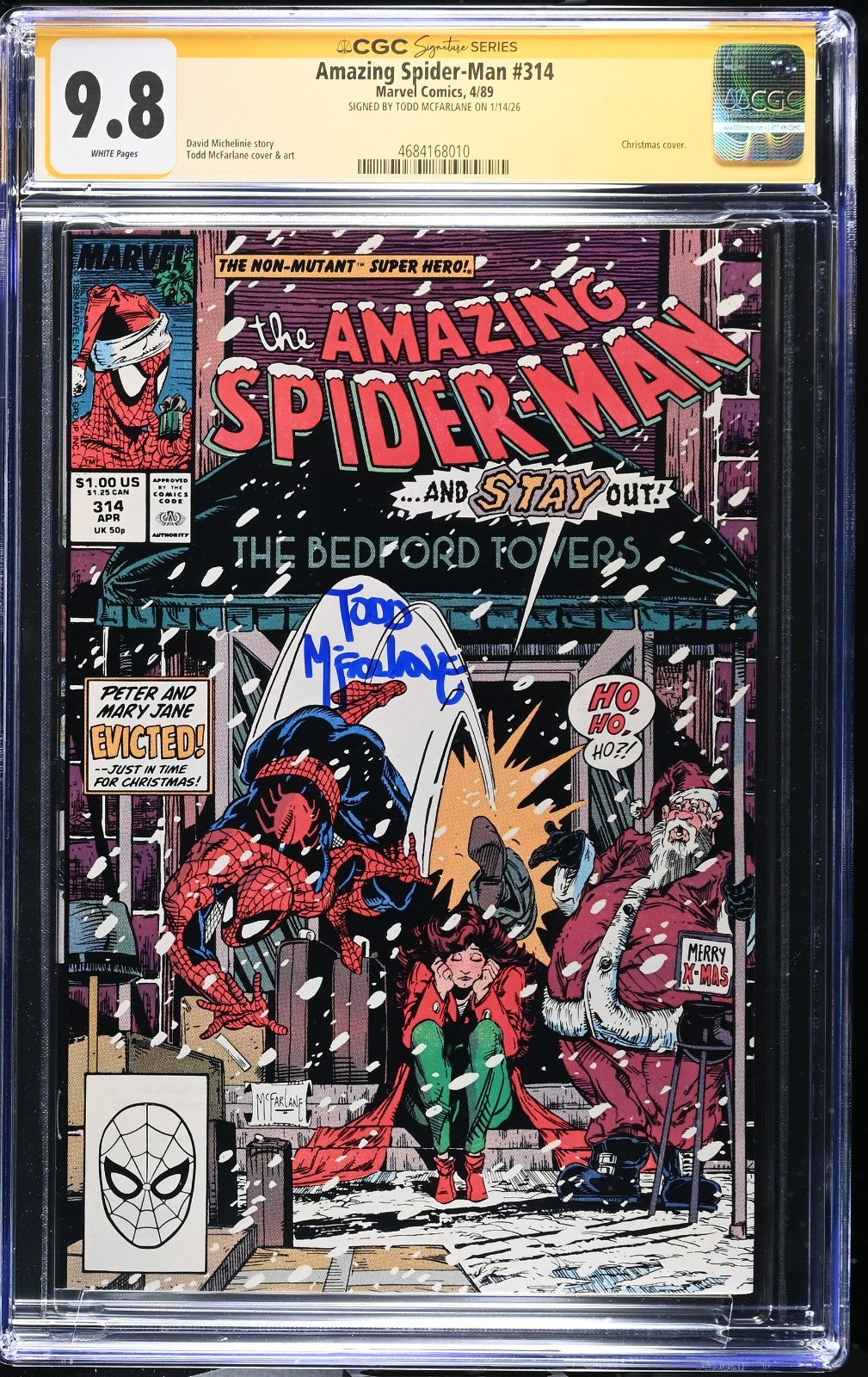 Experience a piece of comic book history with the Amazing Spider-Man (1989) #314, graded 9.8 Near Mint/Mint by the Certified Guaranty Company (CGC). This single issue is not only a first printing but also boasts the coveted CGC IN-HOUSE SIGNING, featuring the iconic cover art and interior signatures of the legendary Todd McFarlane.