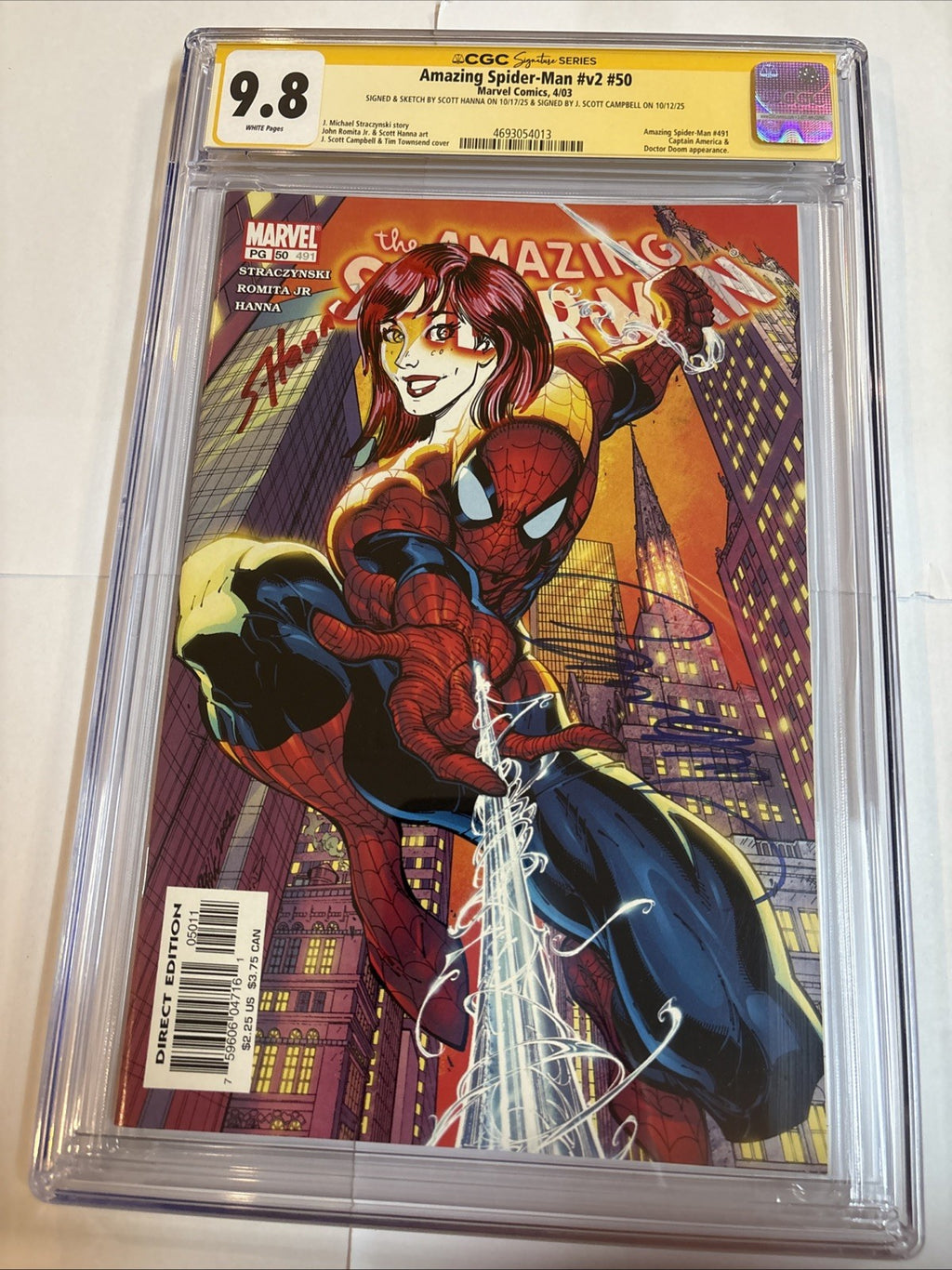 Amazing Spider-man (2003) # 50 (CGC 9.8 SS) Signed Campbell + Sketched Hanna