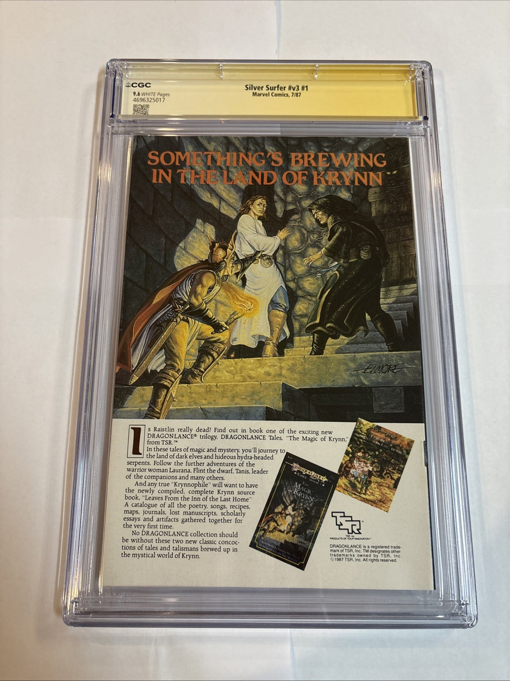 Dive into the cosmic adventures of the Silver Surfer with this pivotal 1987 issue, meticulously crafted by the talented Joe Rubinstein. Embellished with his signature and sketch, this piece of comic history emerges as a must-have for enthusiasts and collectors alike. The book is not just a narrative; it's a tribute to the Modern Age of comics, preserved in a stellar grade of 9.6 Near Mint+, ensuring its premium quality and collector's appeal.