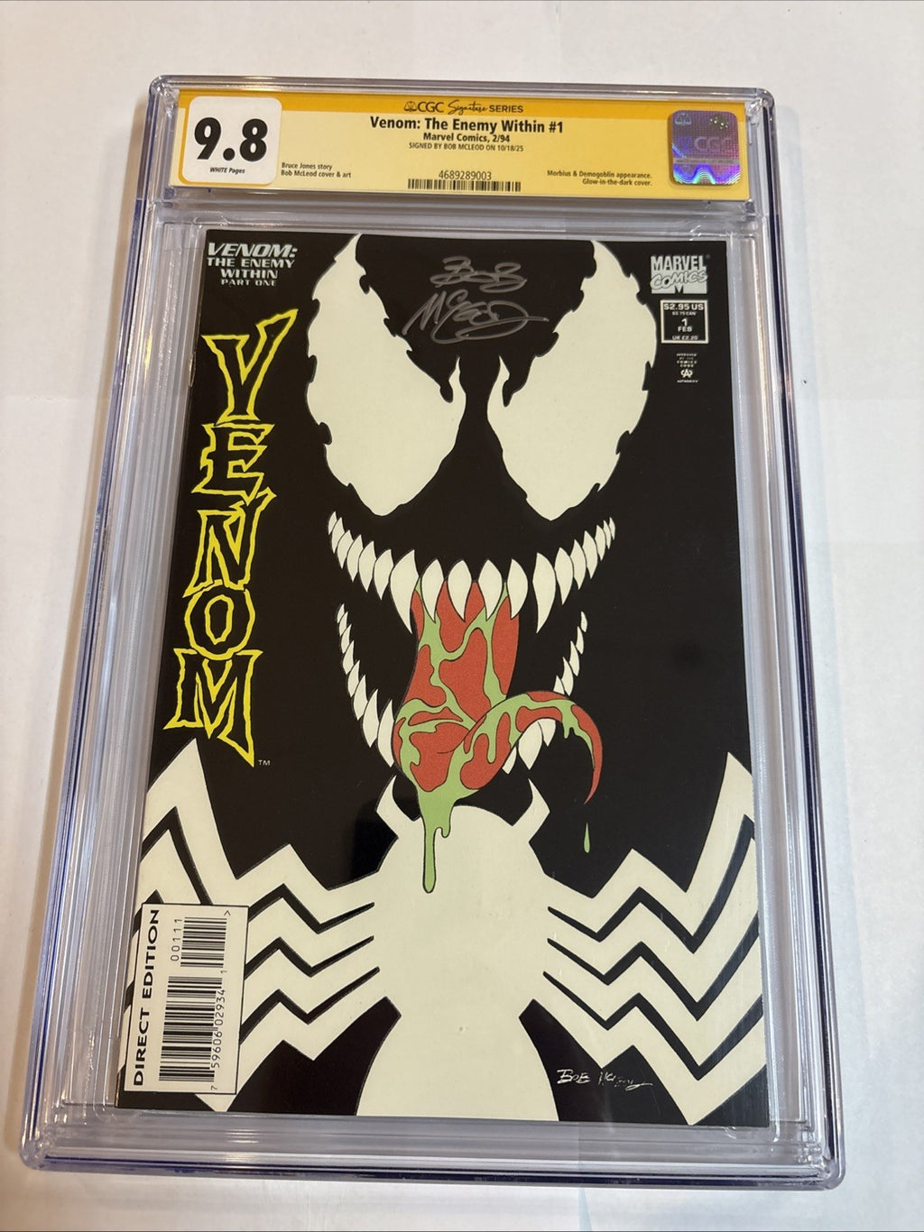 Dive into the gripping world of Marvel's extraterrestrial antihero with Venom: The Enemy Within (1994) #1, a must-have for enthusiasts and collectors alike. Featuring the remarkable Spider-Man as he navigates through the dangers of an alien universe, this comic book is not just a piece of narrative art but a slice of superhero lore. Enhanced by the autograph of renowned artist Bob McLeod, it's an authentic treasure that embodies the Modern Age of comics.