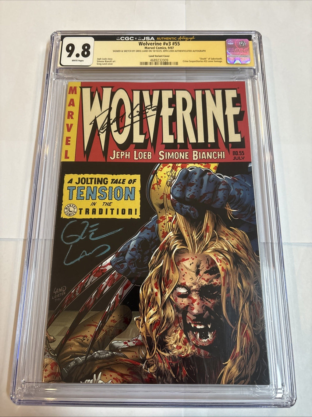 Wolverine V3 (2007) # 55 (CGC 9.8 SS) Sketch Land Variant + Signed Jeph Loeb JSA