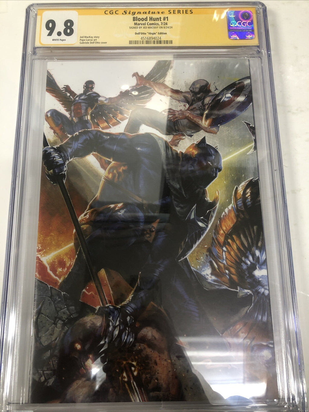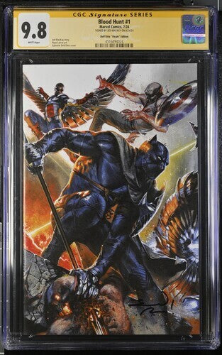 Dive into the thrilling world of "Blood Hunt" with issue #1, graded a pristine 9.8 Near Mint/Mint by the Certified Guaranty Company (CGC). This 2024 release, a must-have for Marvel enthusiasts, boasts the signature of renowned artist and writer Jed MacKay, elevating its collectability.