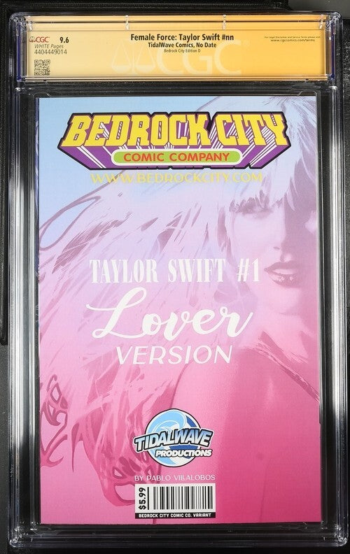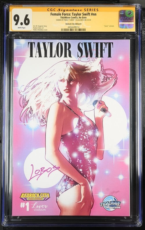This is the perfect addition to any comic book collector's shelf. The Female Force: Taylor Swift # (CGC 9.6 SS) Signed Pablo Villalobos Edition D is a modern age comic book published by Tildwave Comics. It features Spider-man as the main character and falls under the genre of superheroes.