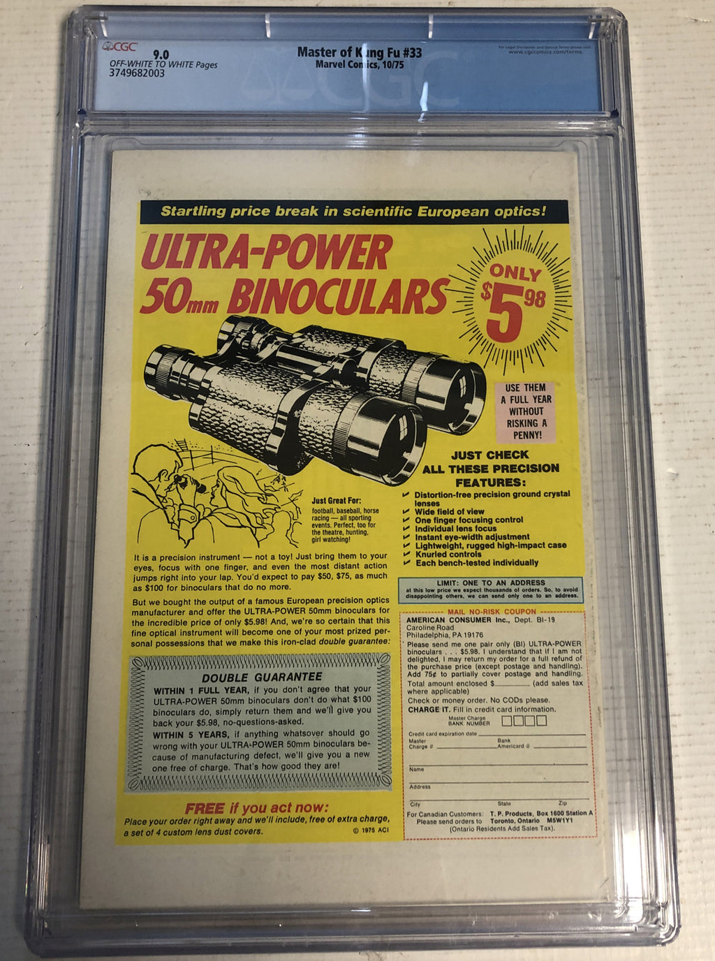 Master Of Kung Fu (1975) # 33 ( CGC 9.0 ) Mark Jewellers Insert.