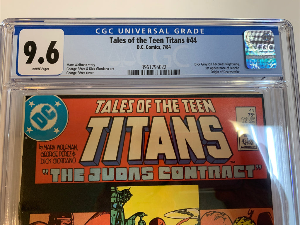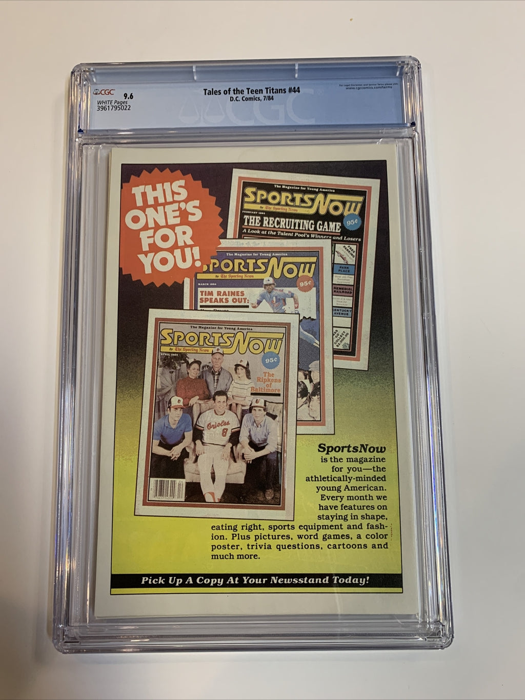Dive into the Bronze Age of comics with Tales Teen Titans (1984) #44, an essential issue featuring the first appearance of Nightwing. graded a CGC 9.6 Near Mint+ for its impeccable preservation and stunning visuals. This comic book is a treasured piece for both avid collectors and fans of the Teen Titans superhero team, showcasing a pivotal moment in the DC Comics universe.