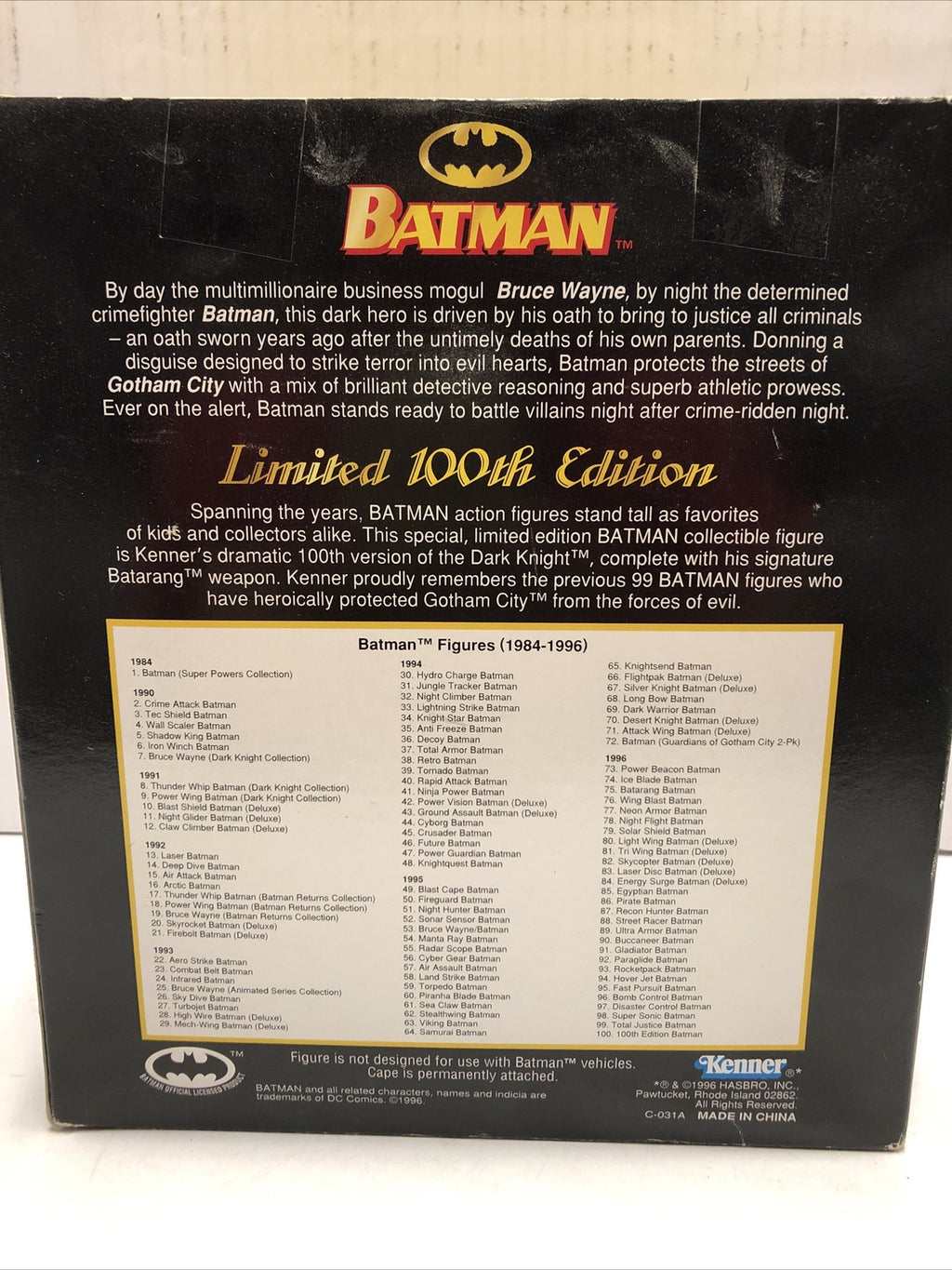 DC Comics Batman Limited 100th Edition Action Figure 1996 Hasbro Kenner New. Condition is "Used". Shipped with Expedited shipping.