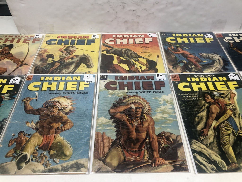 Step into the Golden Age of comics with the Indian Chief set, featuring issues #3, 6, 7, 8, 11, 12, 14, 15, 18, 20, 24, and 26. Published in 1953 by Dell Comics, these books are a treasure for enthusiasts of classic adventure genres and US Comics traditions. Each issue showcases the rich storytelling and vivid artwork that define the era's celebrated comic book legacy.