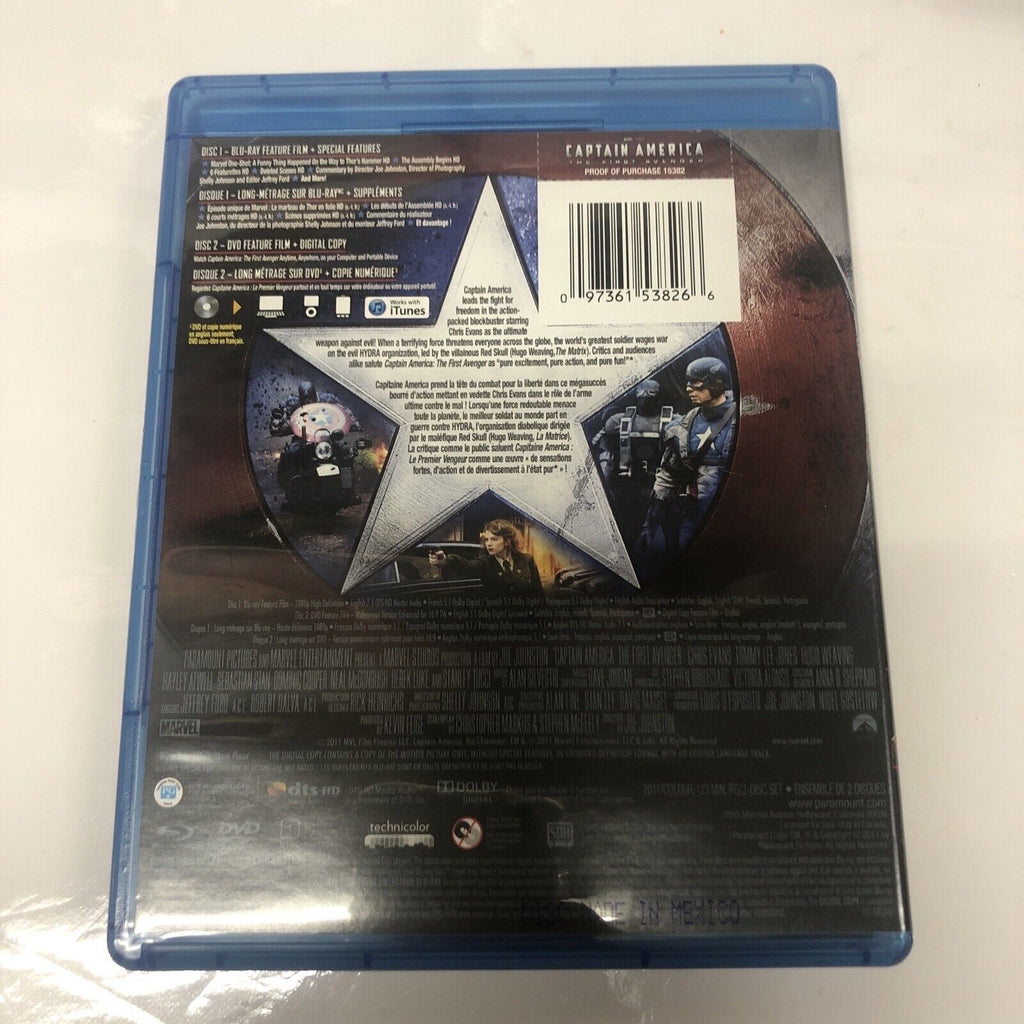 Captain America: The First Avenger (2011) Blu-ray/DVD Canadian Includes Digital. This action-packed superhero film is perfect for fans of the Avengers franchise. The movie follows Steve Rogers, a frail man who is transformed into a super-soldier during World War II.