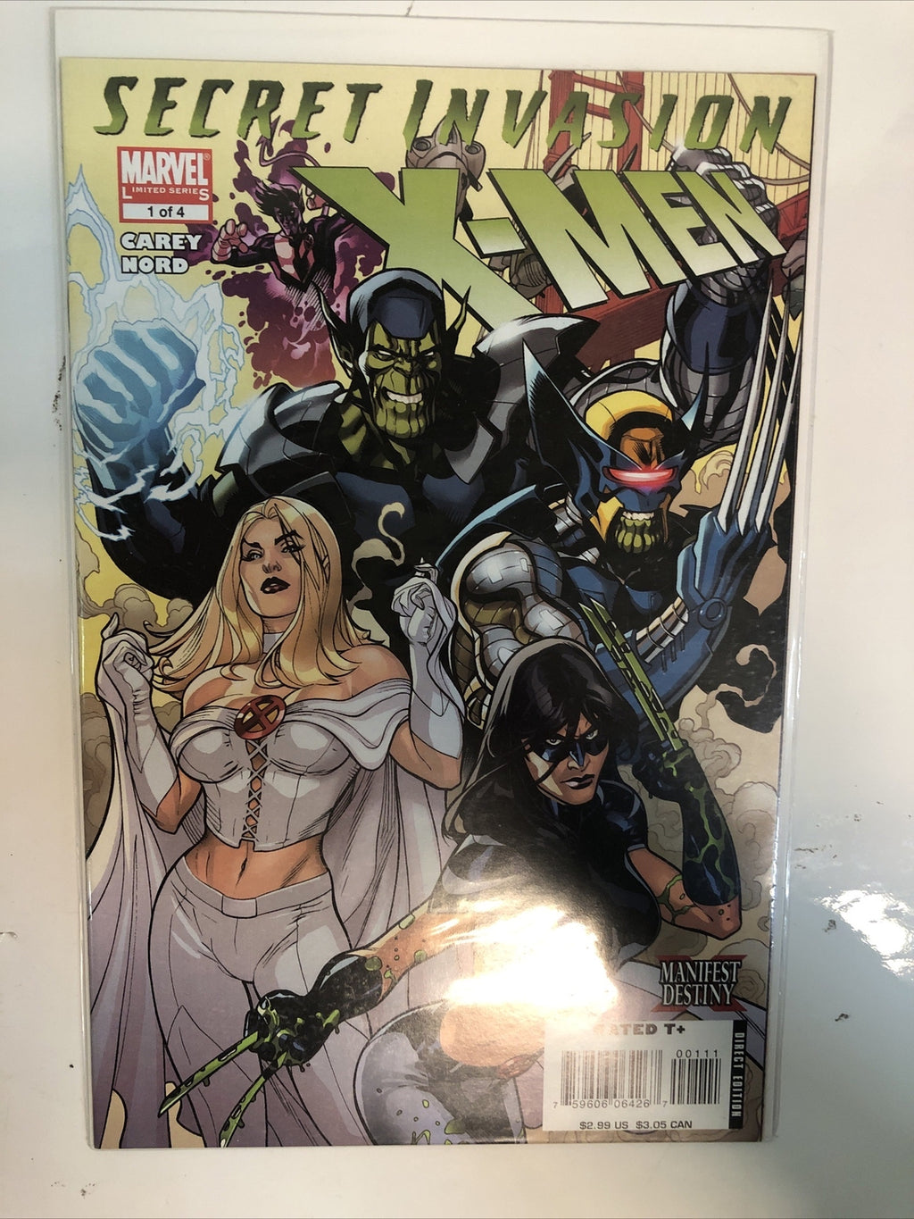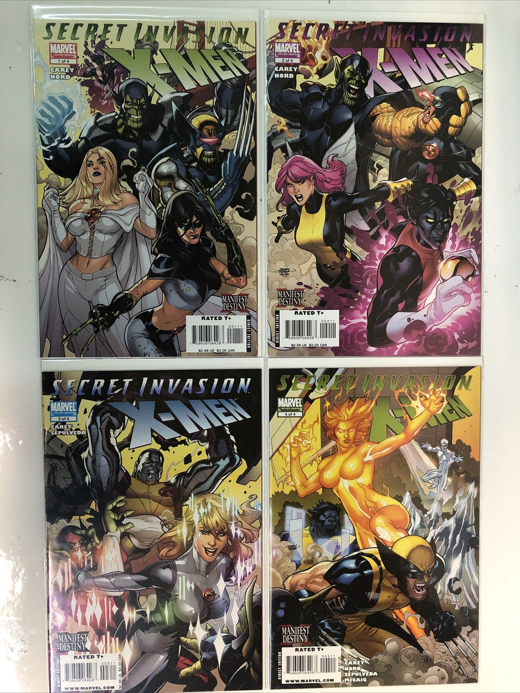 Get your hands on Secret Invasion X-Men (2008) Complete Limited Series # 1-4 in Very Good condition. This Marvel Comics single issue features popular characters such as Storm, Cyclops, Wolverine, Gambit, and Colossus in an action-packed adventure. The limited edition set is a must-have for any US Comics fan and comes graded at 9.0 Very Fine/Near Mint.