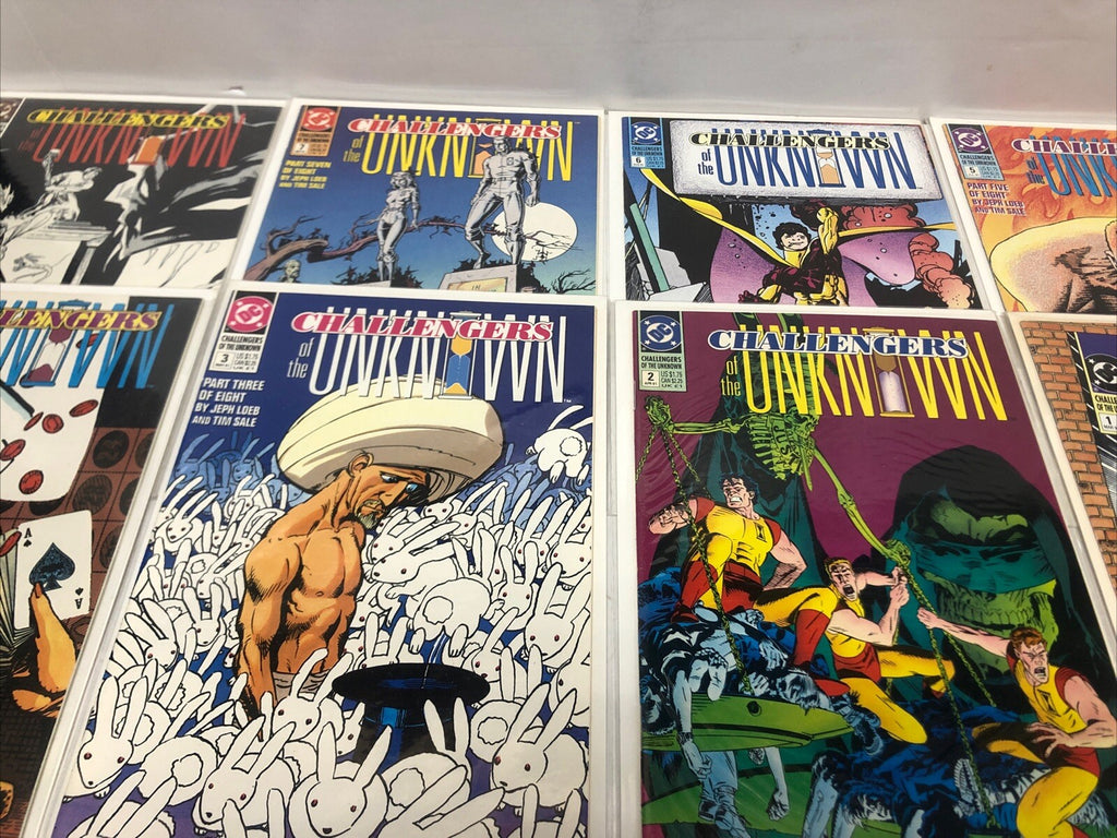 Challengers of the Unknown #1-8 (1991), #1-6 (2004), and #1-18 (1997) comic book series from DC Comics, featuring writer Alan Grant. This set includes a mix of modern adventure stories in the TMNT universe, set in the Challengers of the Unknown series. Published in English, this collection showcases a mix of US Comics tradition with a grade of 7.0 Fine/Very Fine. Ideal for collectors and fans of the Challengers of the Unknown series, this set is a must-have addition to any comic book collection.