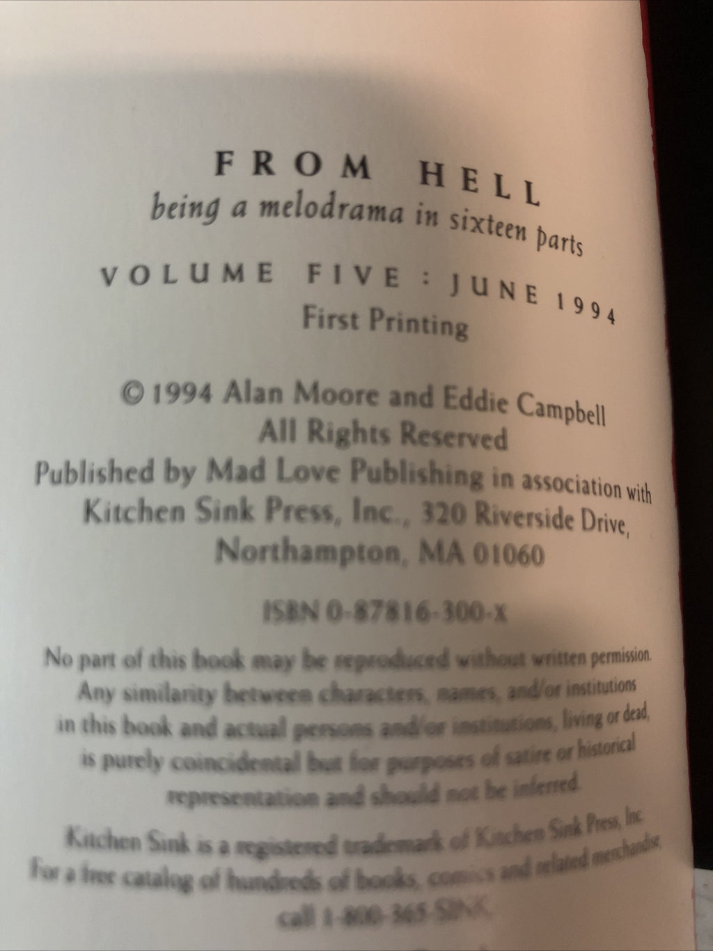 From Hell (1994) #1-6 (VF/NM) Set Printings: 1st: #5,6 2nd:#2,3,4 3rd:#1