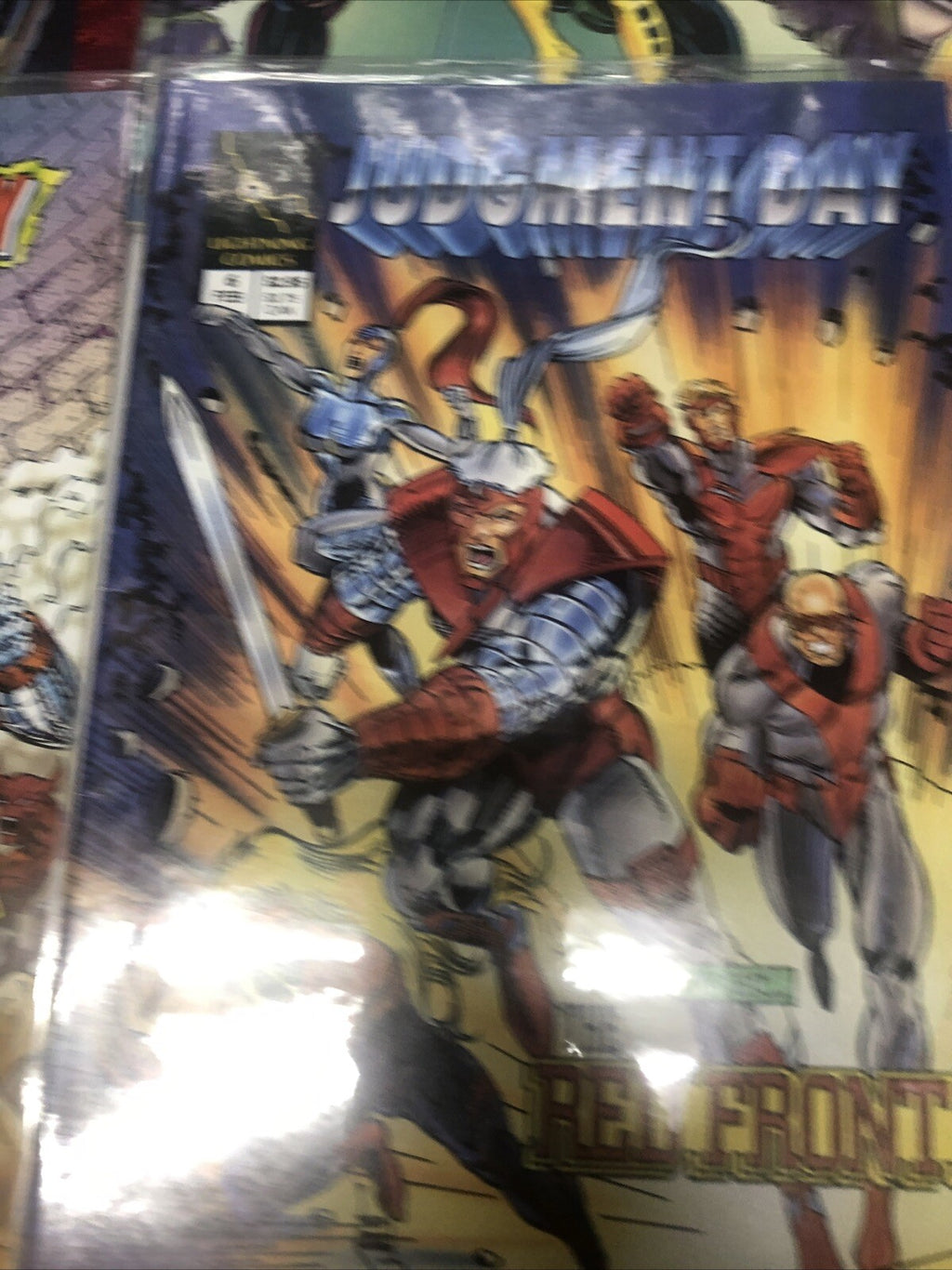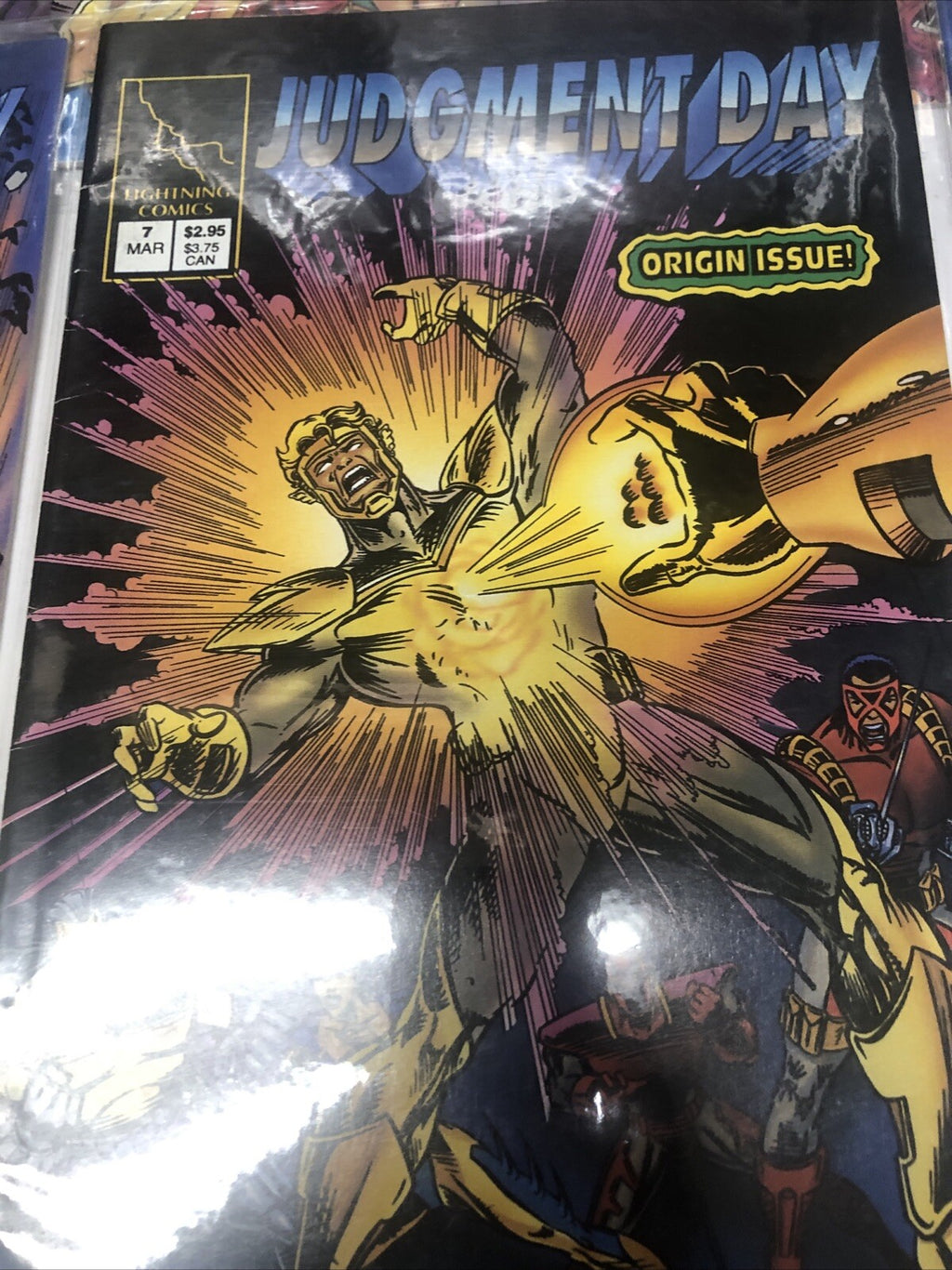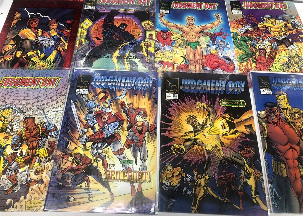 Judgment Day (1993) Set #1-8 from Lightning Comics features the captivating artwork of Joseph A. Zyskowski and tells the thrilling story of the Defenders in a modern age setting. This action-packed adventure set is a must-have for fans of US Comics, with each issue graded at 9.0 Very Fine/Near Mint condition. Immerse yourself in the world of superheroes and villains with this collector's edition series that is sure to impress any comic book enthusiast.