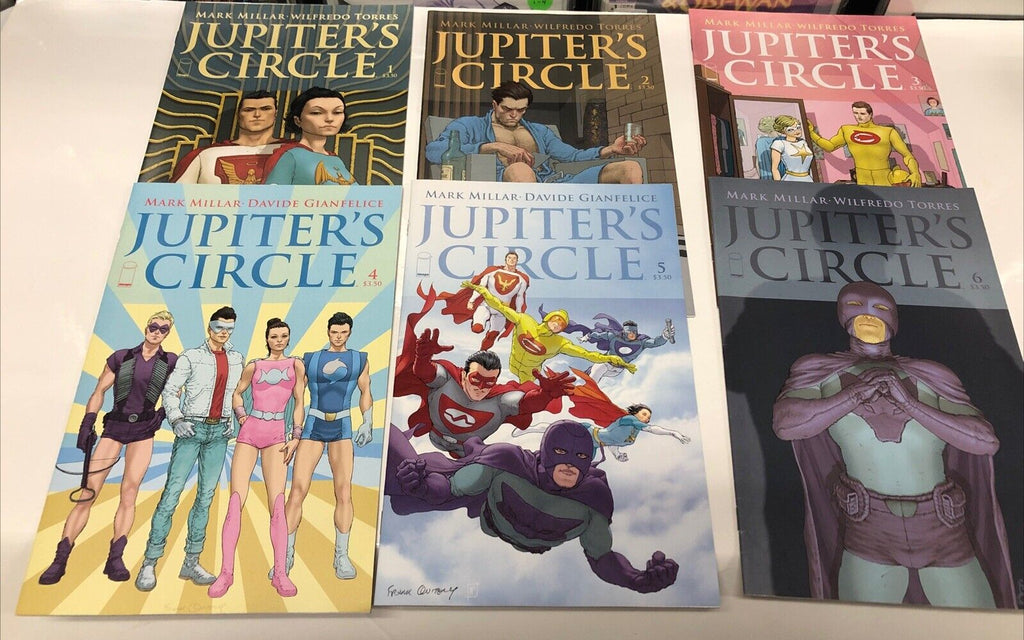 Jupiter's Circle (2015) Set includes issues #1-6 from the acclaimed series by Mark Millar. This softcover comic book collection published by Image Comics features a modern adventure storyline set in the US Comics tradition. With a grade of 7.0 Fine/Very Fine, this set is a must-have for fans of the genre.