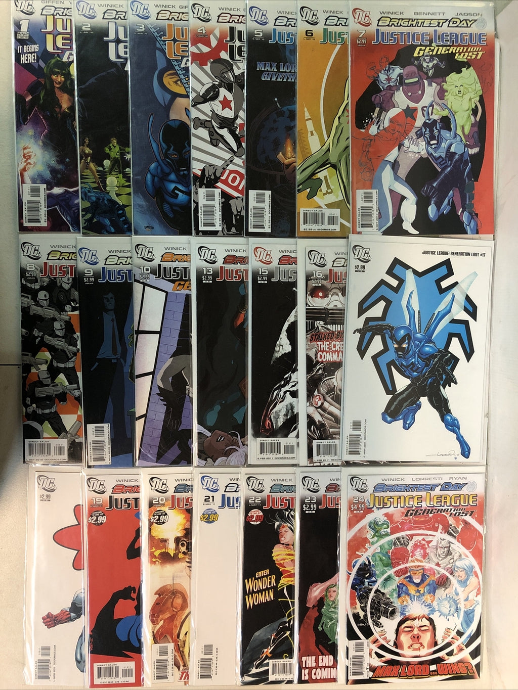 Complete your collection with this Justice League: Generation Lost (2010) set. This set includes issues #1-24, with the exception of #11, #12, and #14. All issues are in Very Fine/Near Mint condition, graded 9.0.