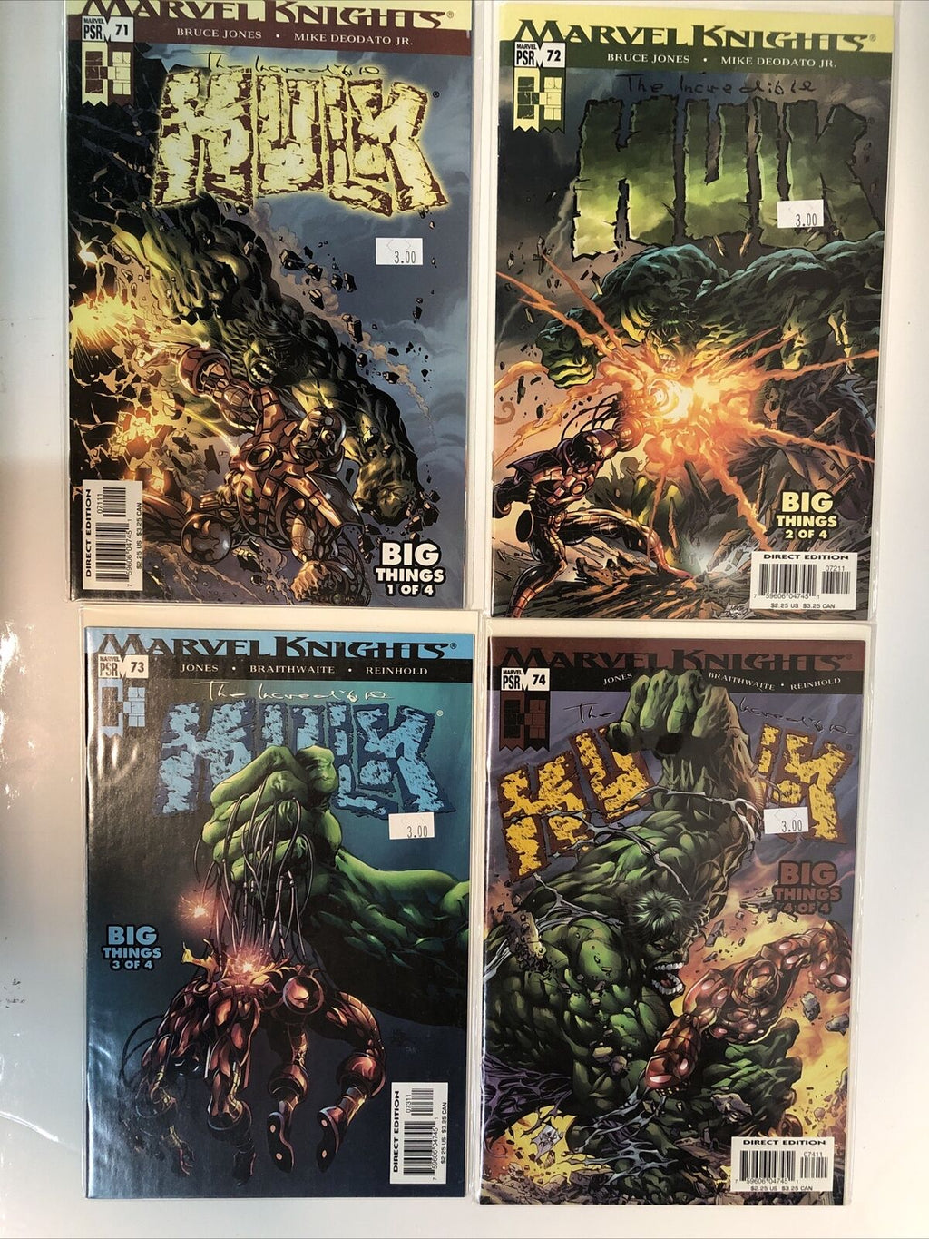 Get your hands on Marvel Knights: The Incredible Hulk (2004) Big Things # 1-2-3-4 in Very Fine/Near Mint condition. This single issue comic book features Iron Man and Hulk, two of Marvel's most iconic characters, and is set in the Modern Age (1992-Now) of the Marvel Universe.