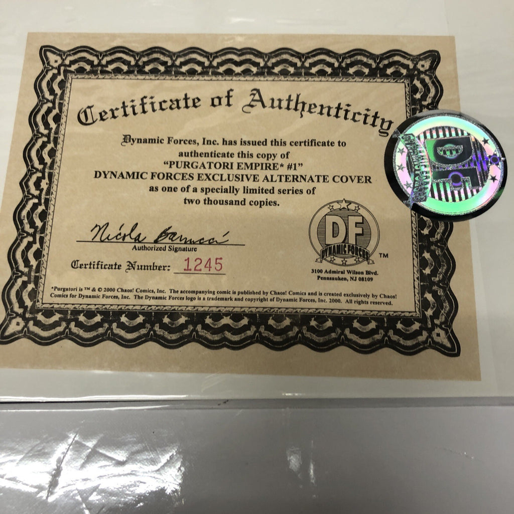 Purgator: Empire (2000) #1 (NM) is a highly collectible comic book written by Marc Andreyko and published by Chaos! Comics. This comic features the character Purgator and belongs to the Modern Age (1992-Now) era of US Comics. With a grade of 9.4 Near Mint, it is in excellent condition and comes with a Certificate of Authenticity.