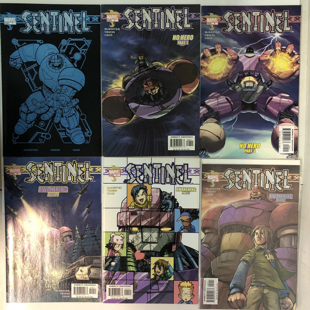 Get started on your Sentinel Salvage collection with this Starter Consequential Set #1-12 from Marvel Comics. The series follows the story of a Sentinel being salvaged from the bottom of the ocean and its subsequent impact on the world. With a Very Fine/Near Mint grade and published in 2003, this set is in excellent condition.