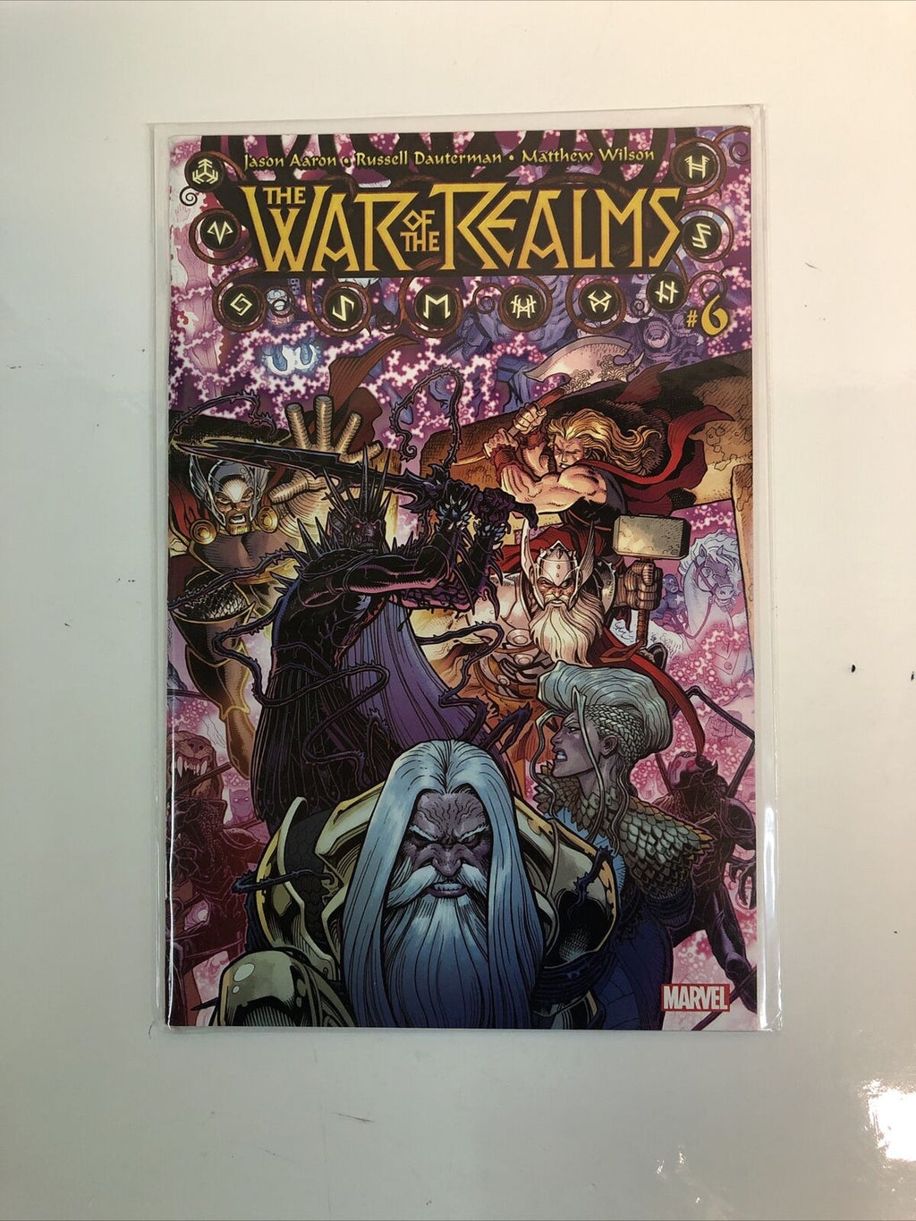 Get ready for an epic battle with The War Of The Realms Starter Set #1-6 from Marvel Comics. This single issue comic book series is in very good condition with a grade of 9.0 Very Fine/Near Mint. The set features fan-favorite characters such as Thor, Captain Marvel, Iron Man, Wolverine, Captain America, Punisher, and Spiderman as they team up to fight in this action-packed adventure.