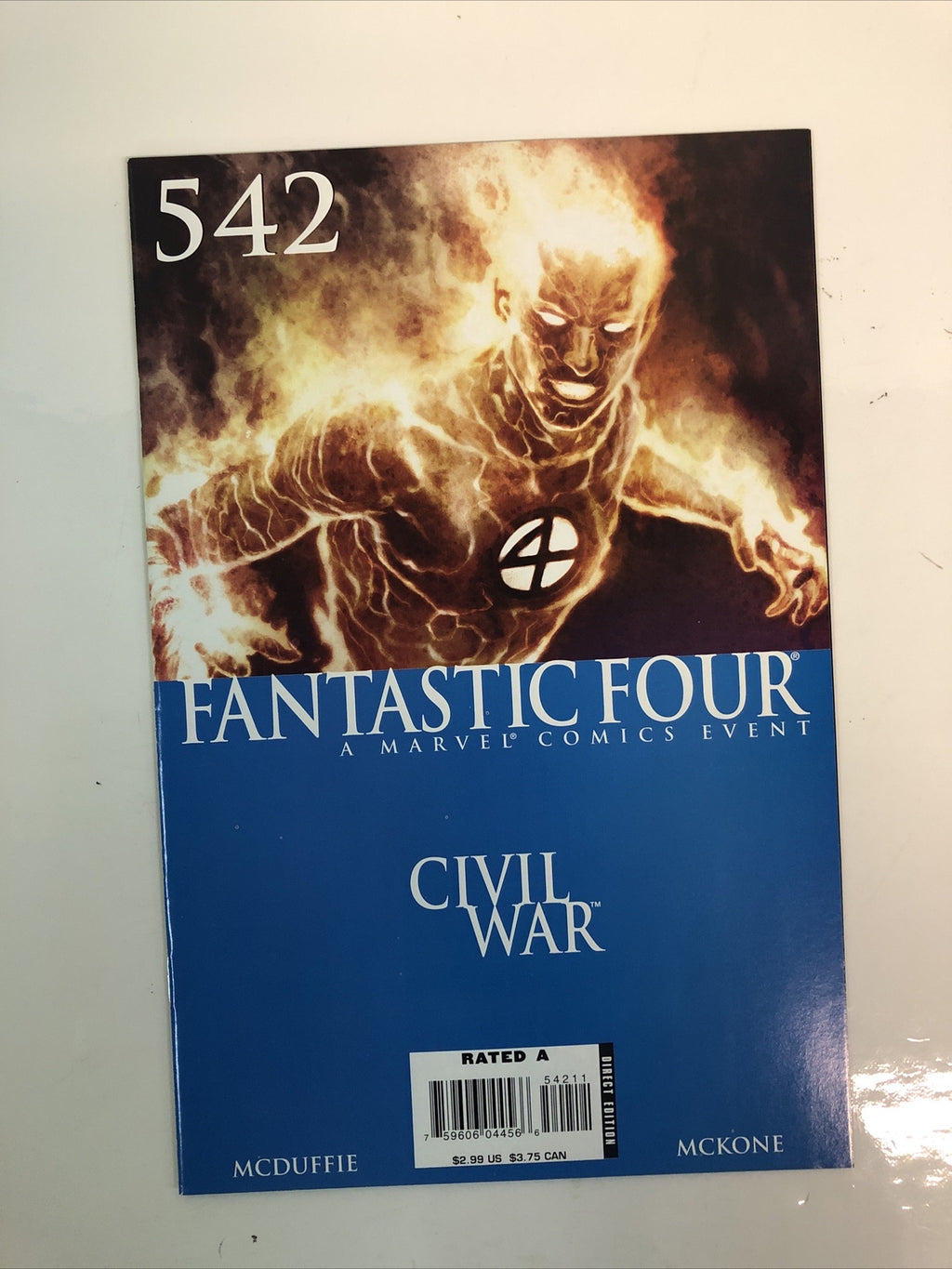 Get your hands on the Fantastic Four: Civil War (2006) Consequential Set # 538-542 in a 9.0 Very Fine/Near Mint condition. This US Comics series from Marvel Comics features the iconic Fantastic Four superhero team, including The Thing, Human Torch (Johnny Storm), Invisible Woman, and Mister Fantastic.