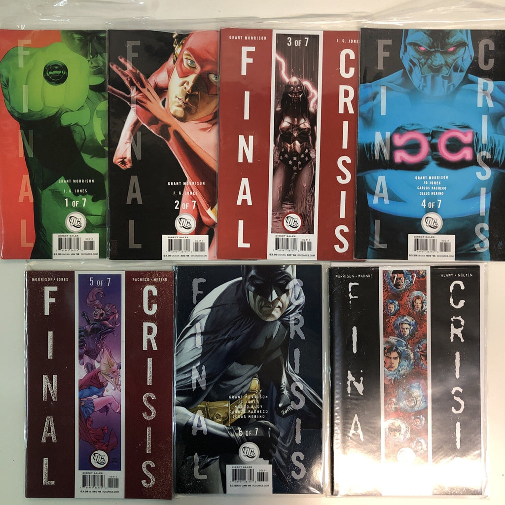 Get your hands on the complete set of Final Crisis #1-7 from DC Comics, featuring Wonder Woman, Superman, Batman and Green Lantern from the Justice League of America. Written by Grant Morrison and illustrated by Doug Mahnke, J.G. Jones, and Carlos Pacheco, this set is in Very Fine/Near Mint condition and is perfect for collectors of US Comics and fans of action-packed superheroes and adventure.