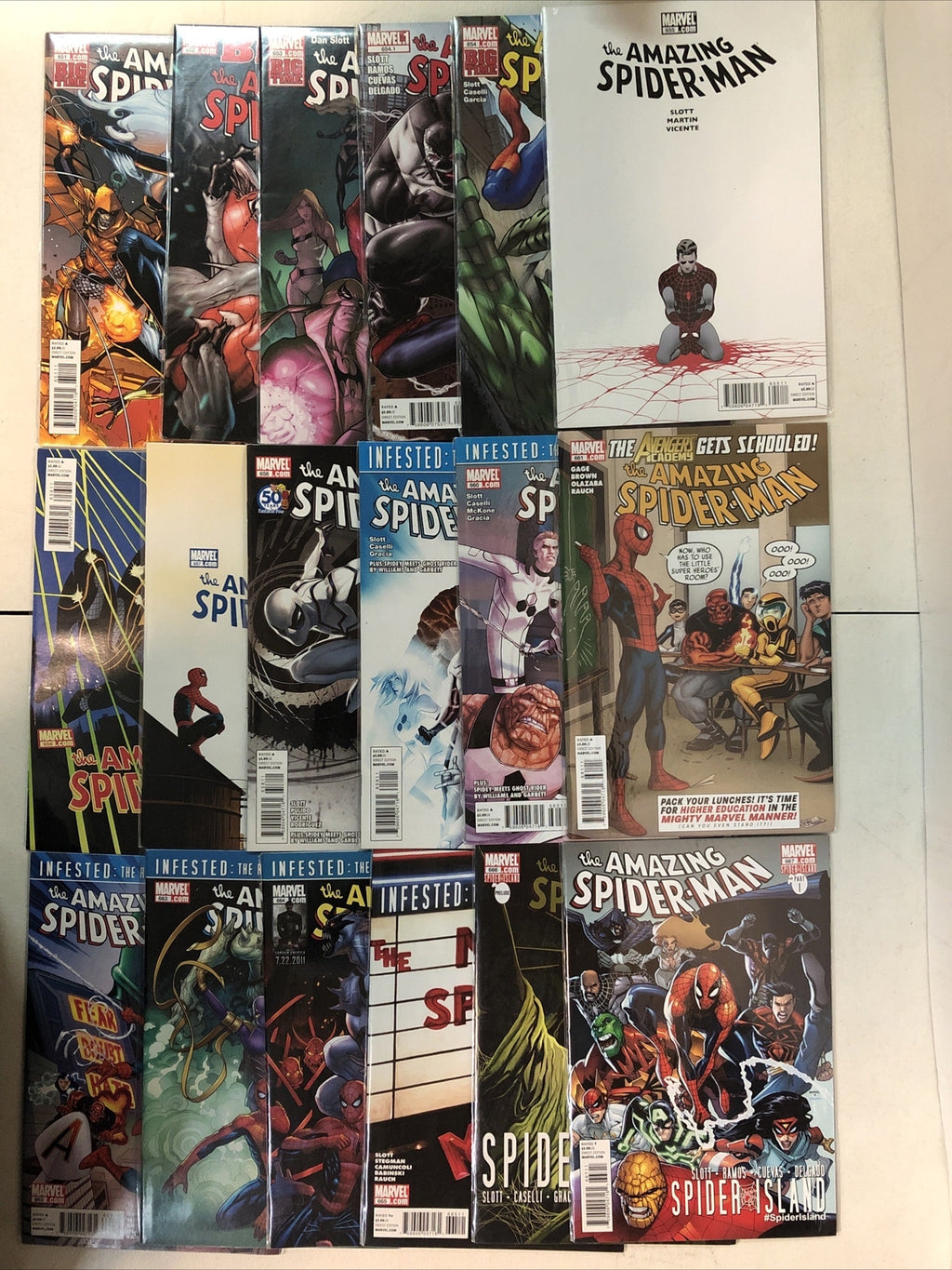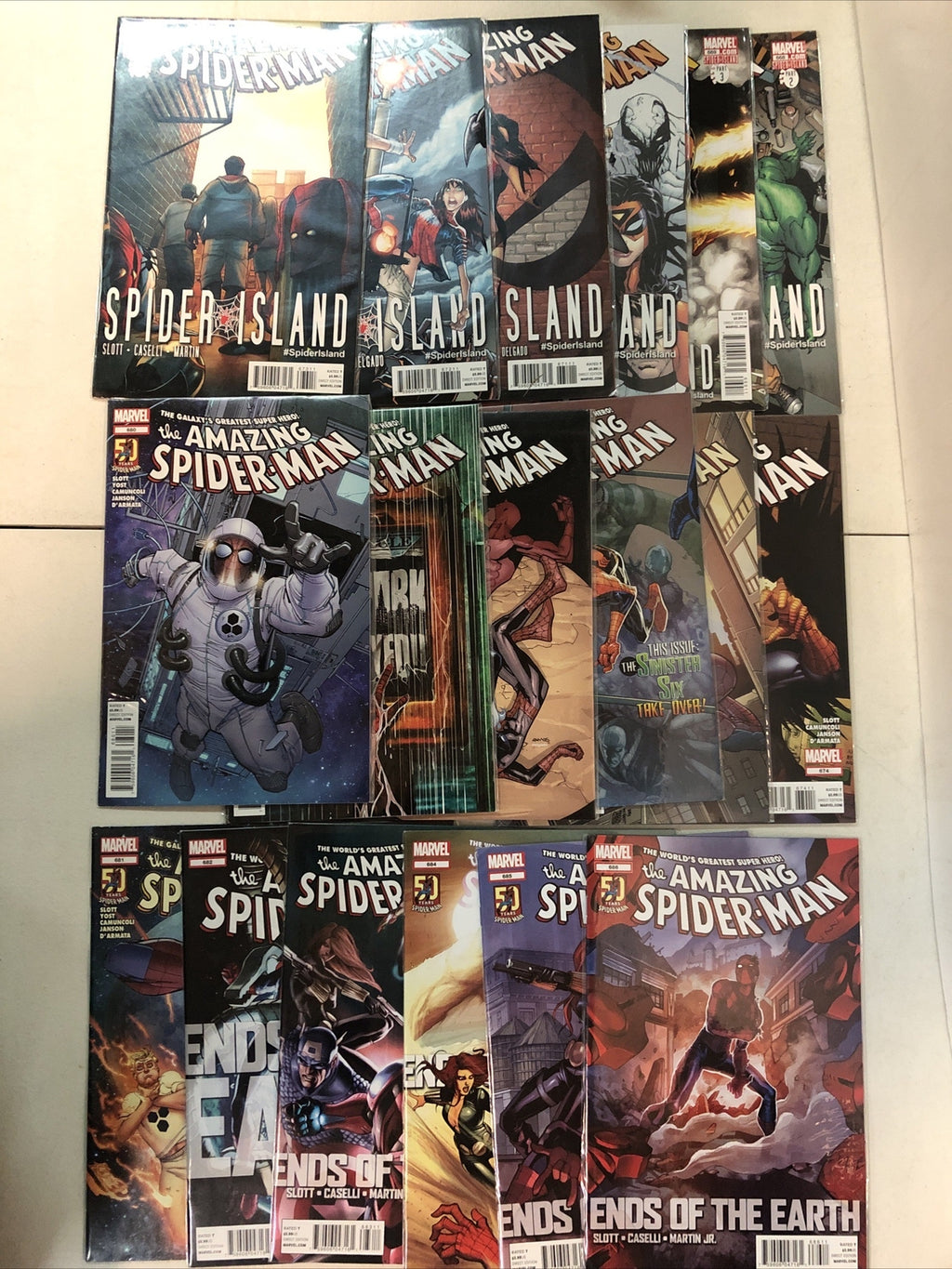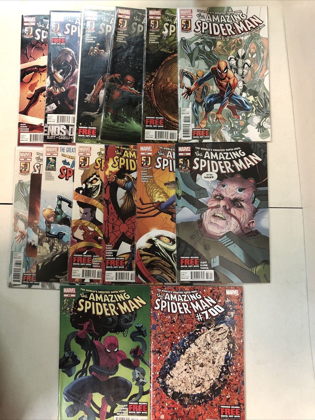 Complete set of The Amazing Spiderman (2010) issues #651-700 in Very Fine/Near Mint condition. Features Mary Jane Watson and Spider-Man (Peter Parker) in the Modern Age (1992-Now) of the Marvel (MCU) universe. This action-packed adventure is a must-have for any fan of US comics and the Avengers superhero team.