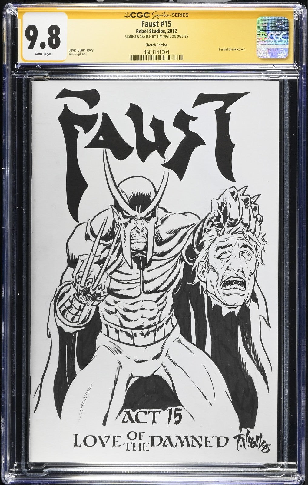 Dive into the captivating world of "Faust" with issue #15, graced with a striking cover sketched and signed by Tim Vigil. This 2012 release from the Modern Age of comics is a must-have for enthusiasts, showcasing a blend of horror and superheroes that has captivated audiences. The issue is a testament to Vigil's artistry, adding a personal touch that enhances its collectibility.