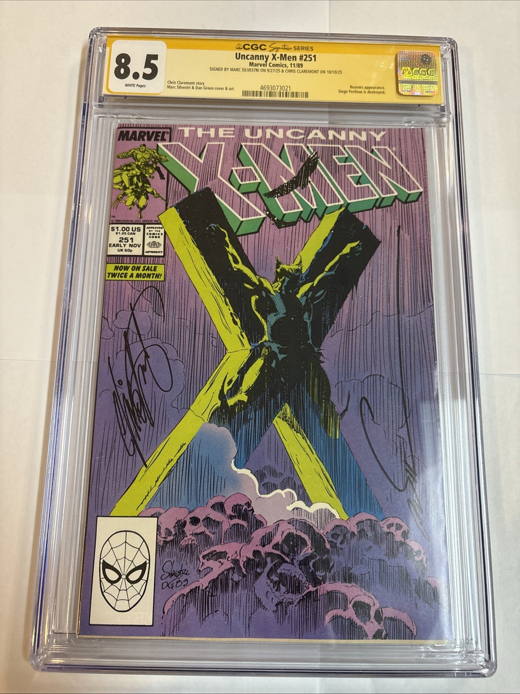 Dive into the action-packed world of the Uncanny X-Men with issue #251, a must-have for enthusiasts and collectors alike. Graded at a solid 8.5 Very Fine+ by the CGC, this 1989 Marvel Comics treasure features the gripping storytelling of Chris Claremont and the iconic artwork of Marc Silvestri. The issue comes signed by both, a testament to its authenticity and a valuable addition to any collection.