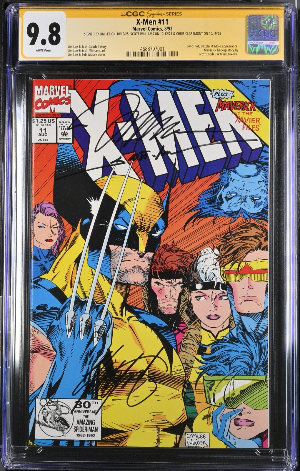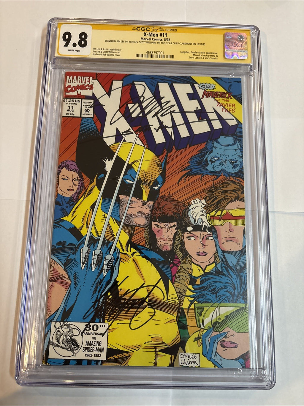 This issue is further enhanced by the signatures of legendary creators Jim Lee and Chris Claremont, with additional signature certification from Scott Williams. A true collectible from Marvel Comics, published in 1992 during the Modern Age of comics, it represents a culmination of storytelling excellence. This comic is a must-have for enthusiasts and collectors alike, offering a slice of the rich tradition of US Comics.