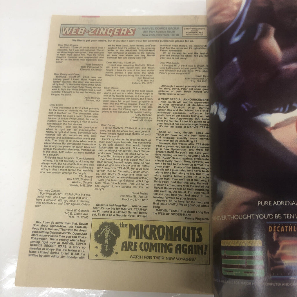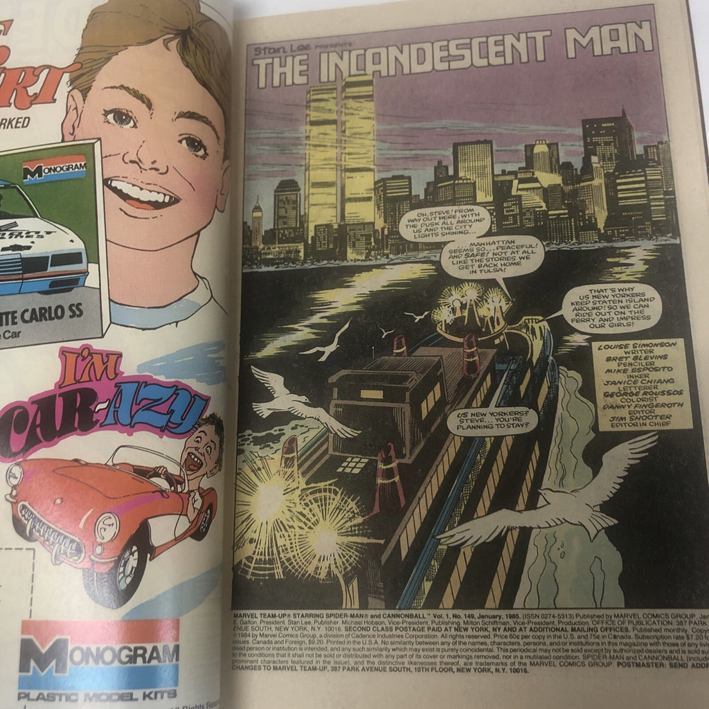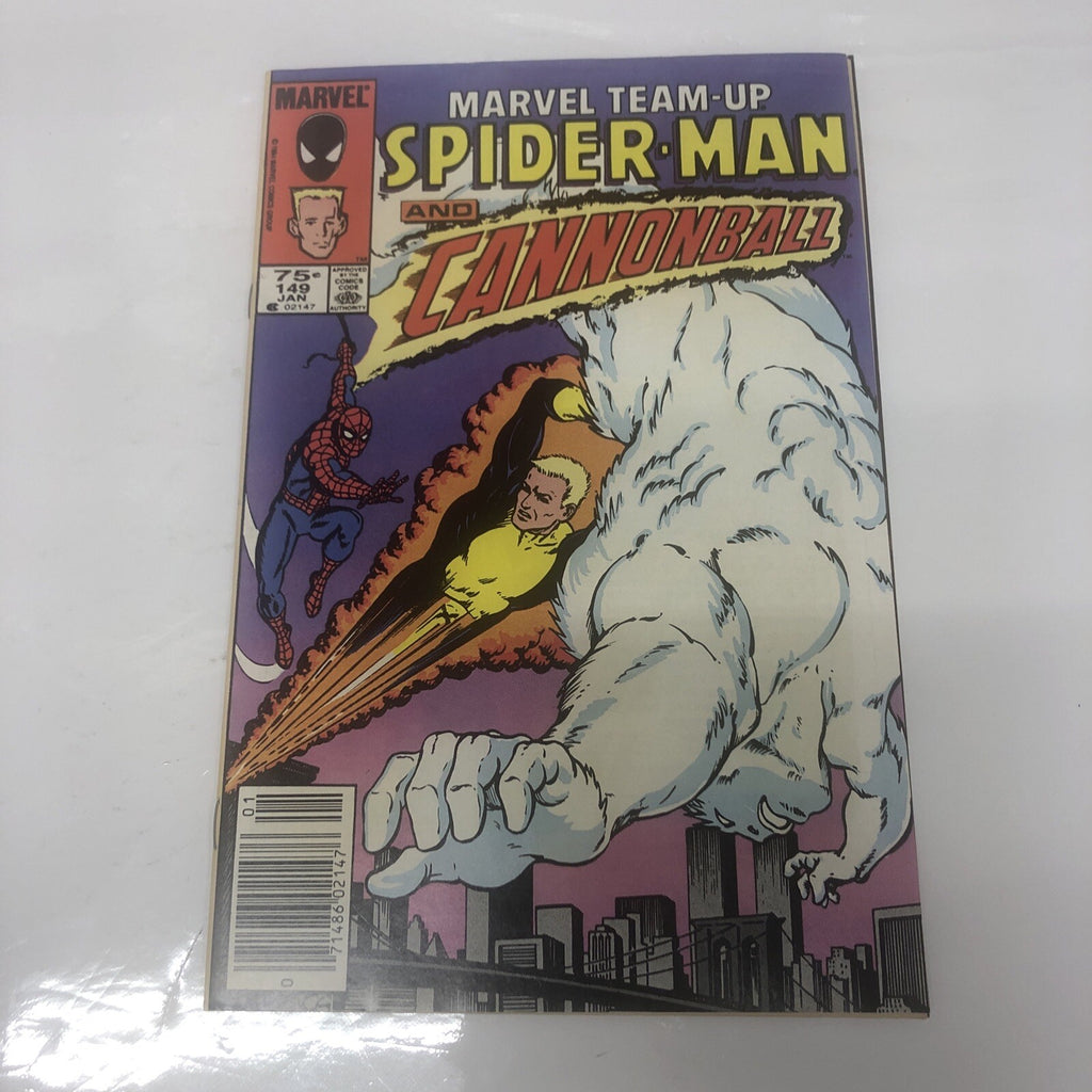 Marvel Team-Up Spider-Man And Cannonball (1985) # 149 (VF) CPV by Louise Simonson is a must-have for any collector of Copper Age US Comics. This action-packed issue features Spider-Man teaming up with Cannonball in a battle against the villainous Juggernaut.
