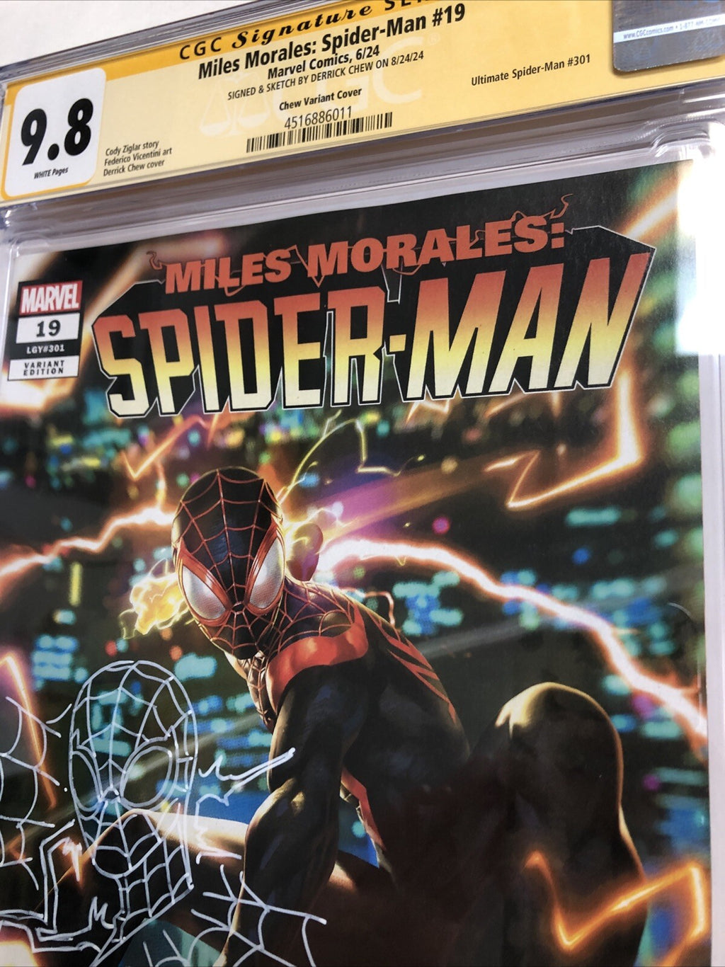 Dive into the thrilling world of Miles Morales with Spider-Man (2024) #19, a must-have for enthusiasts and collectors alike. This issue, graded at a pristine CGC 9.8 Near Mint/Mint, boasts a stunning cover by Derrick Chew, one of the highlights for fans of the Modern Age of comics. Marvel Comics continues its rich tradition of superhero storytelling, delivering an English language edition that promises to be a standout in any collection.