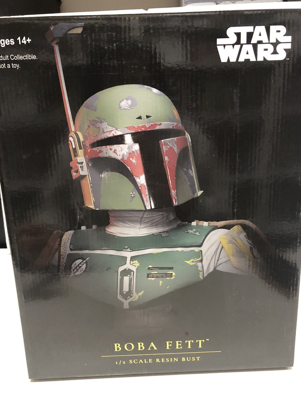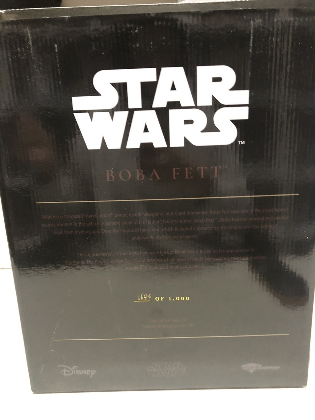 Delve into the realm of collectible excellence with the Diamond Select 1/2 scale resin statue of the iconic Star Wars character, Boba Fett. This limited edition piece, numbered # 0640 out of 1000, showcases meticulous detail and vibrant, multicolor finishes that bring the bounty hunter to life right down to his signature armor.