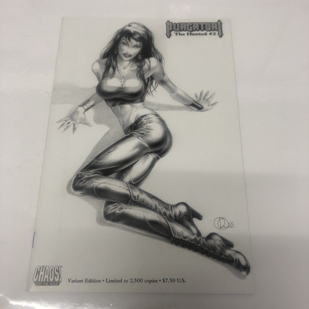 Purgatori #2, published in 2001 by Chaos Comics, features a limited edition variant cover and is graded 9.0 Very Fine/Near Mint. Written by Brian Pulido and Joshua Dysart, this issue is part of the Purgator series and is set in the Modern Age (1992-Now) of US Comics. The comic is written in English and is a must-have for fans of the Bad Girl genre.