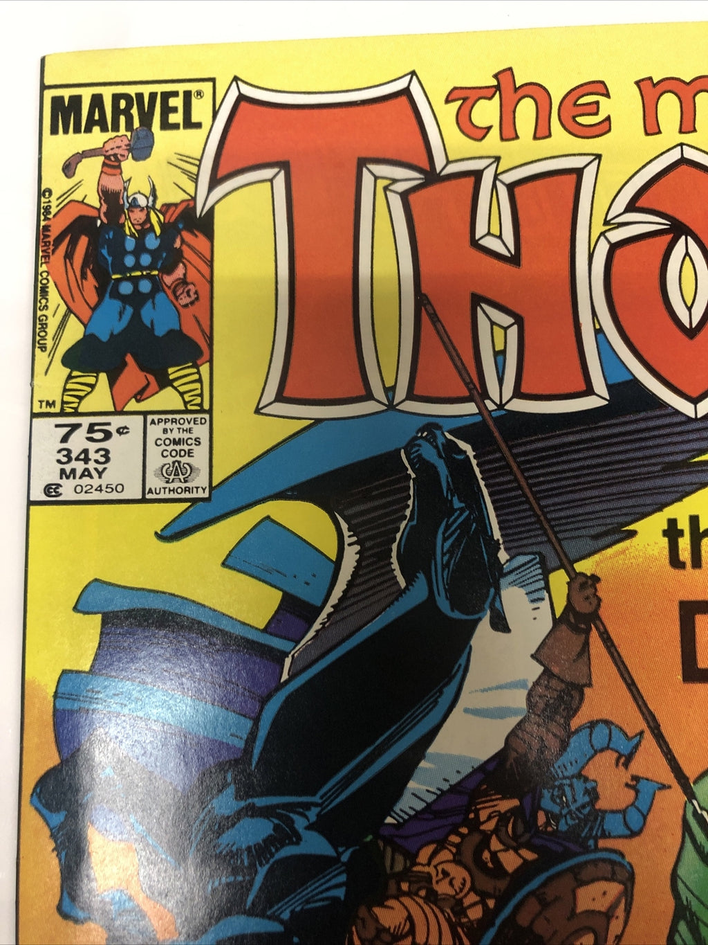 Get your hands on the 1984 Canadian Price Variant of Thor #343, graded at 8.0 Very Fine. This issue features the iconic character Thor, written and illustrated by the legendary Walter Simonson. Marvel Comics brings you an action-packed adventure in the Copper Age (1984-1991) era.
