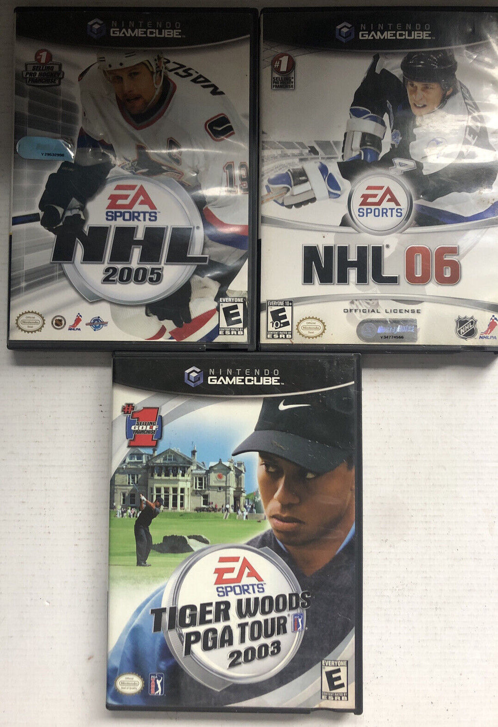 NHL 05,NHL 06,Tiger Woods PGA Tour 2003 Nintendo GameCube Bundle.