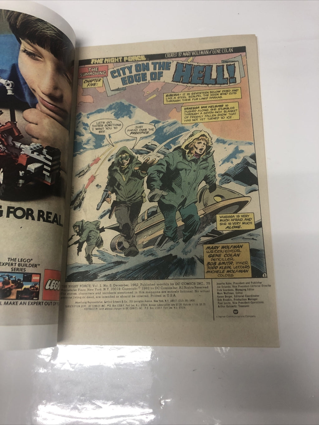 Night Force (1982) # 5 (FN/VF) Canadian Price Variant, written by Marv Wolfman, is a Bronze Age comic book published by DC Comics. The action-packed series follows a team of supernatural investigators as they take on the forces of evil. This particular issue is a highly collectible Canadian price variant.
