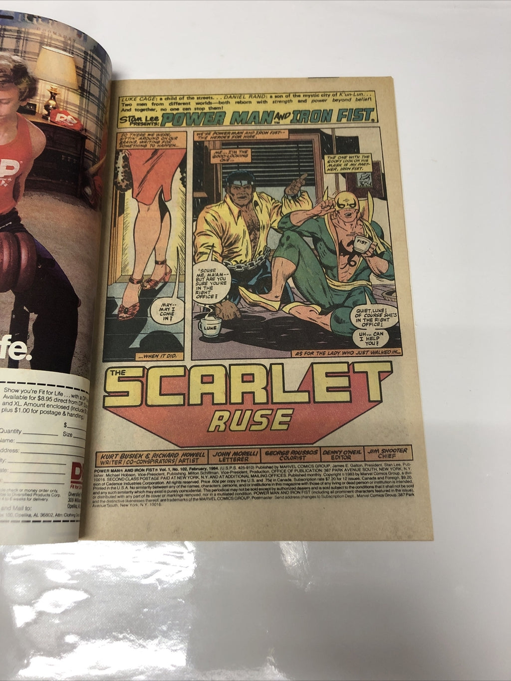 Power Man and Iron Fist #102 Canadian Price Variant in 9.0 Very Fine/Near Mint condition. Written by Kurt Busiek, this Bronze Age (1970-83) comic features action-packed adventures of the iconic duo. Published by Marvel Comics in 1983, this English language comic is perfect for collectors and fans of US comics.