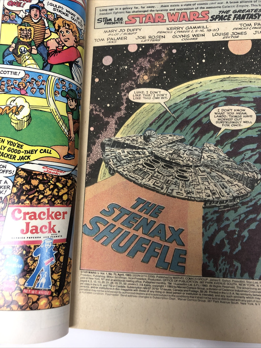 Get your hands on this rare Canadian Price Variant of Star Wars #70 from 1983, written by Mary Jo Duffy. This action-packed comic is graded at 7.0 Fine/Very Fine and is perfect for any collector or Star Wars fan. The comic is in English and is part of the Bronze Age (1970-83) era of US Comics.