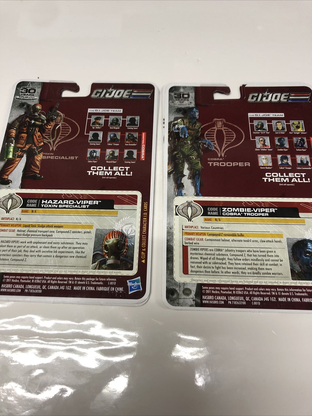 Get your hands on the GI Joe (2011) Dossier set, featuring a Cobra Trooper and Zombie Viper character. Made in China by Hasbro, this set is perfect for fans of the Heroes franchise and GI Joe series. The set includes cards and a dossier, making it a great addition to any collection.