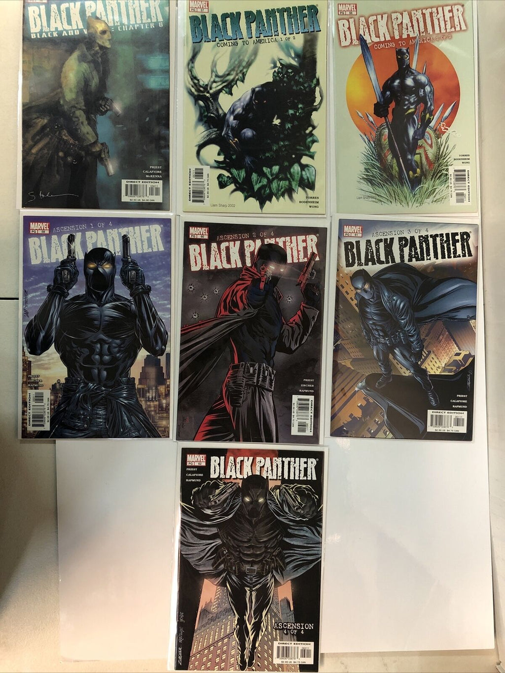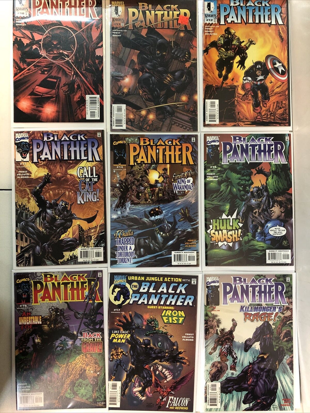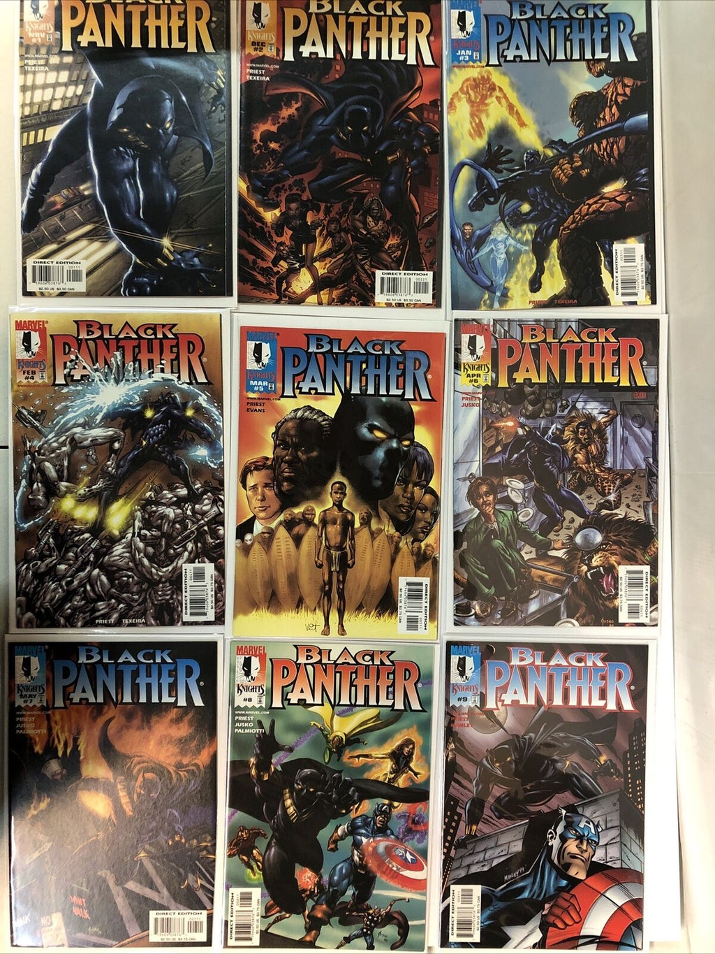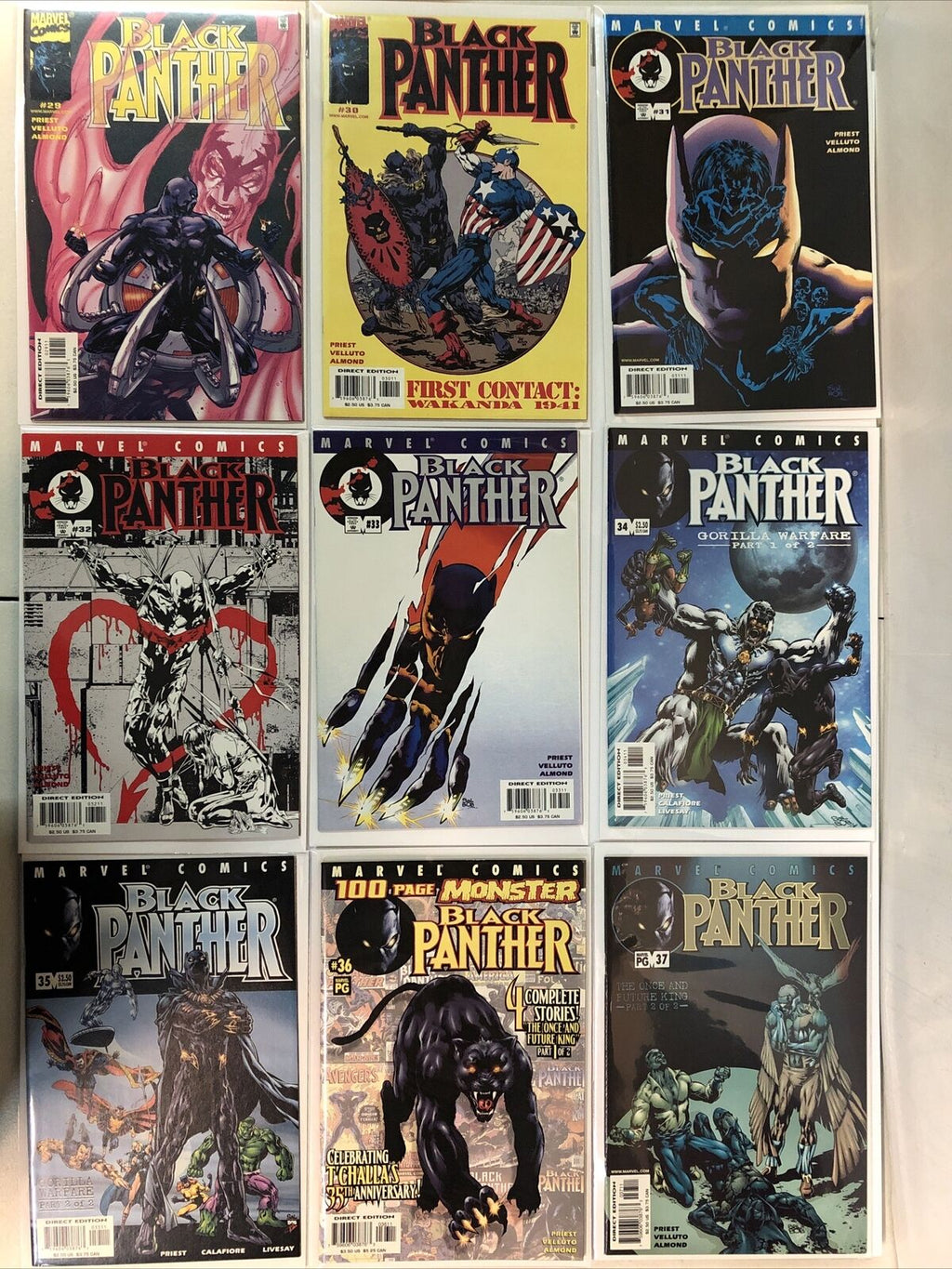 Get your hands on this rare set of Black Panther comic books from 1998, published by Marvel Comics. This set includes issues #1-62, missing only #22, and is graded at a 9.0 Very Fine/Near Mint condition. The featured superheroes include Iron Man, Deadpool, Storm, Wolverine, Captain America, and of course, Black Panther himself.