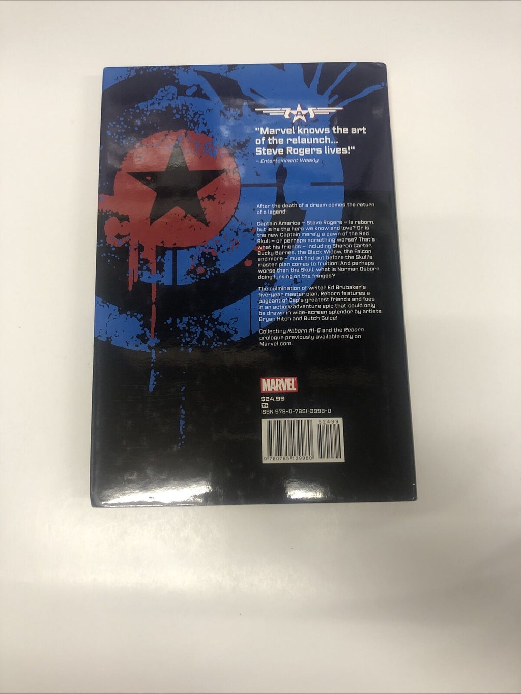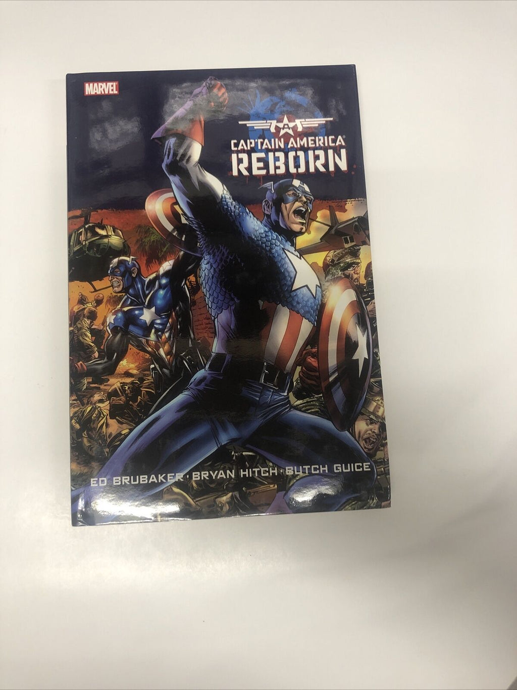 Captain America Reborn (2009) HC Marvel Universe by Ed Brubaker, Bryan Hitch, and Guice. This hardcover comic book features the iconic character Captain America (Steve Rogers) in a modern era setting. The story follows his rebirth and return to the Marvel Universe after his supposed death.